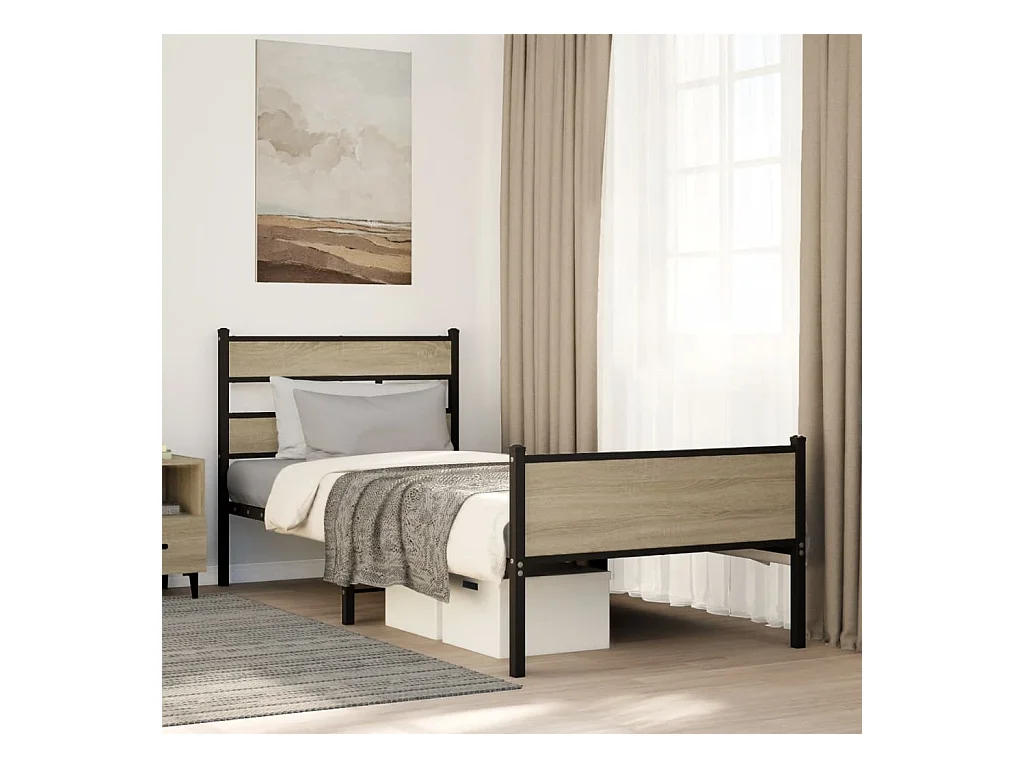 Cadre de lit en métal sans matelas chêne sonoma 100x200 cm