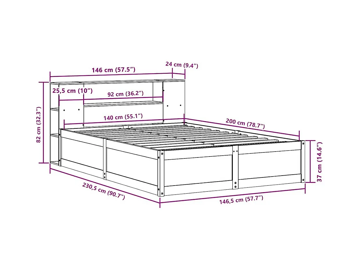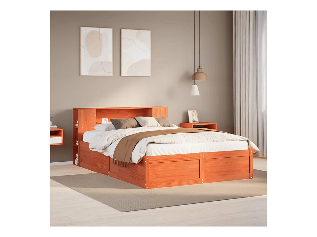 Cadre de lit sans matelas cire marron 140x200cm bois pin massif