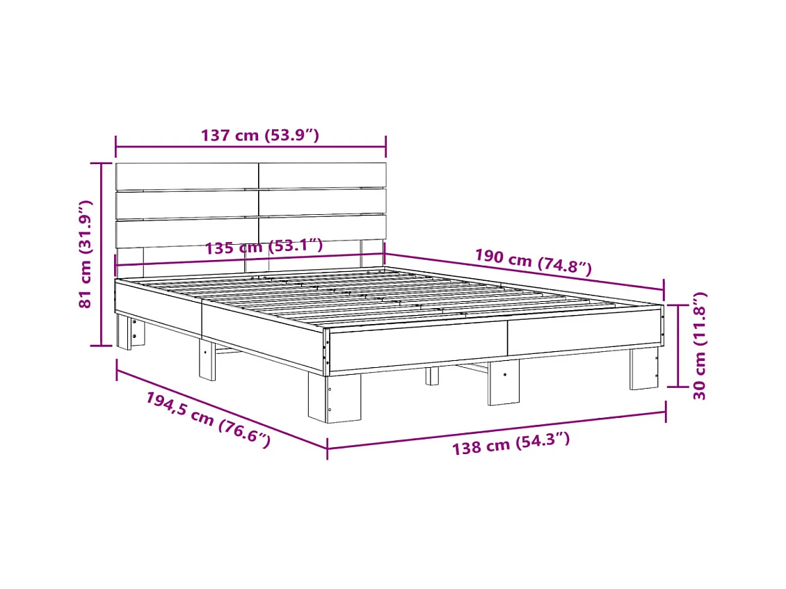 Cadre de lit sans matelas sonoma gris 135x190 cm