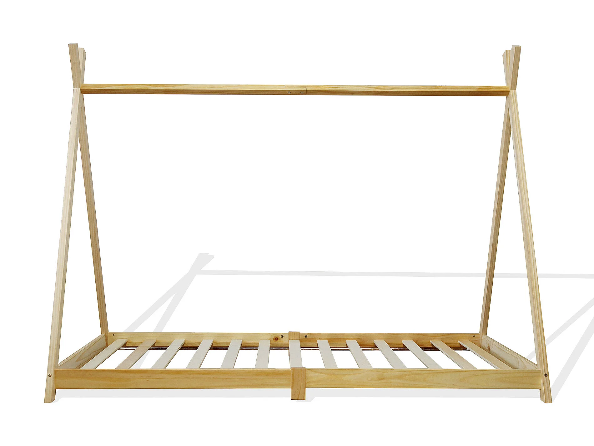Cadre de lit simple pour enfants rideau en bois naturel 90x200