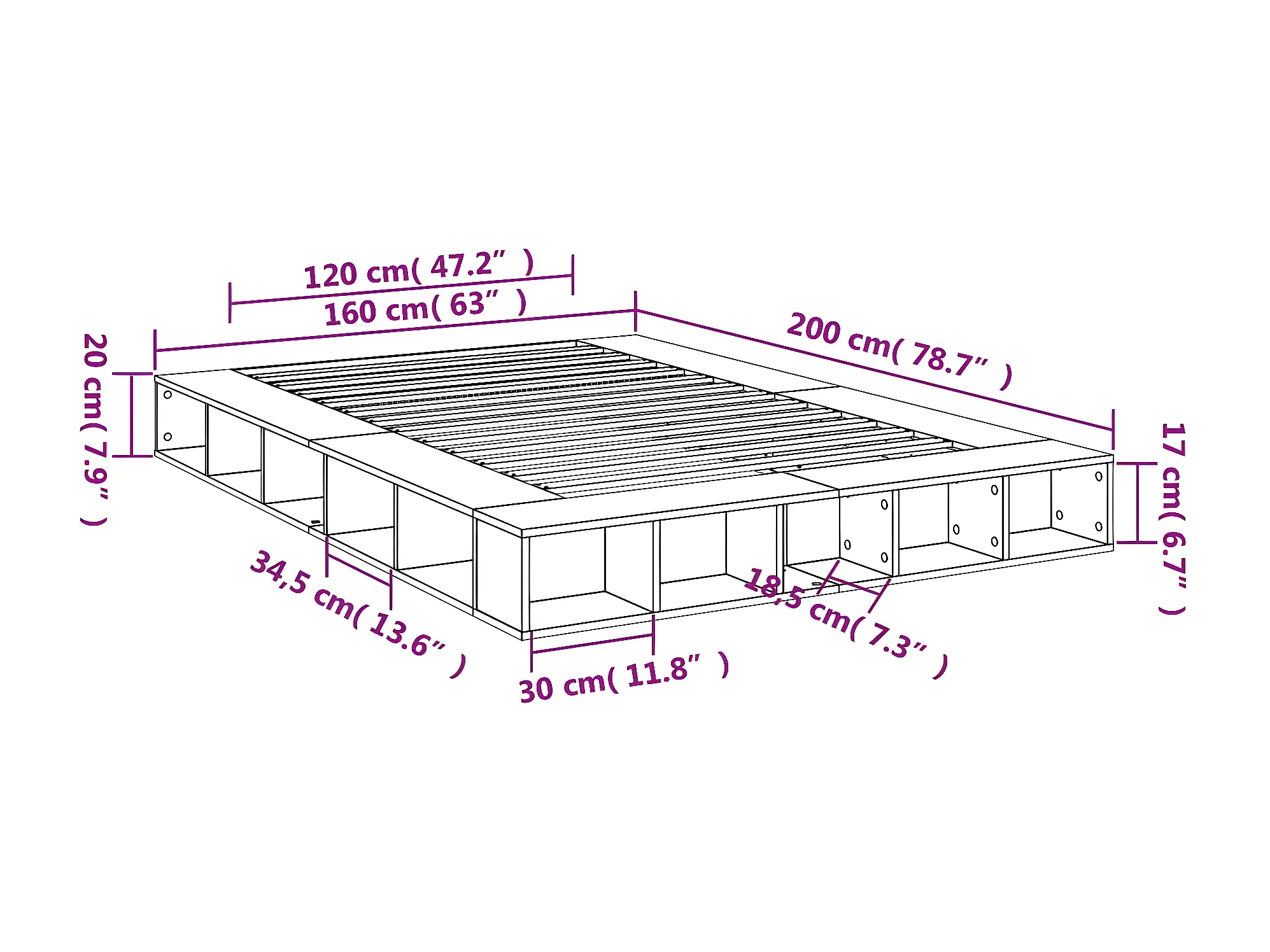Cadre de lit sonoma gris 160x200 bois d'ingénierie