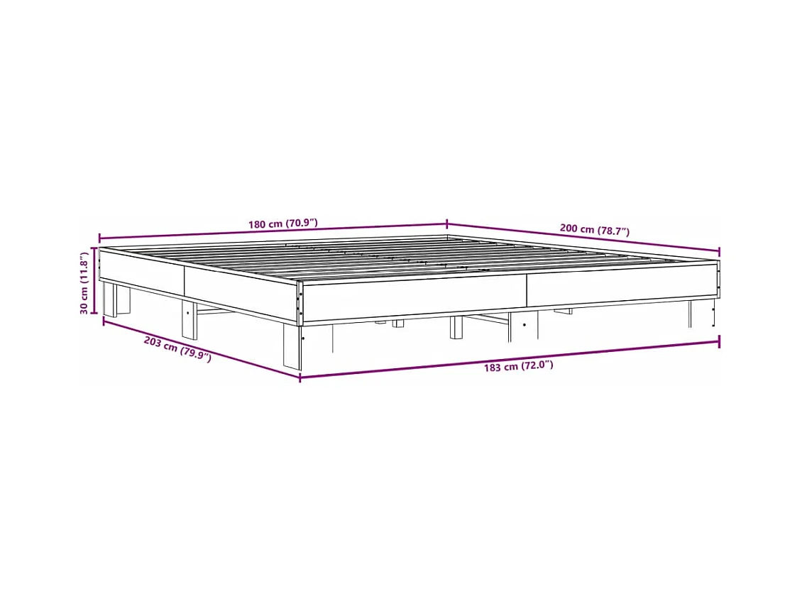 Cadre de lit sonoma gris 180x200 bois d'ingénierie et métal