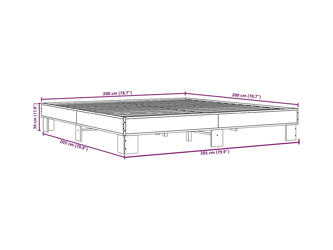 Cadre de lit sonoma gris 200x200 bois d'ingénierie et métal