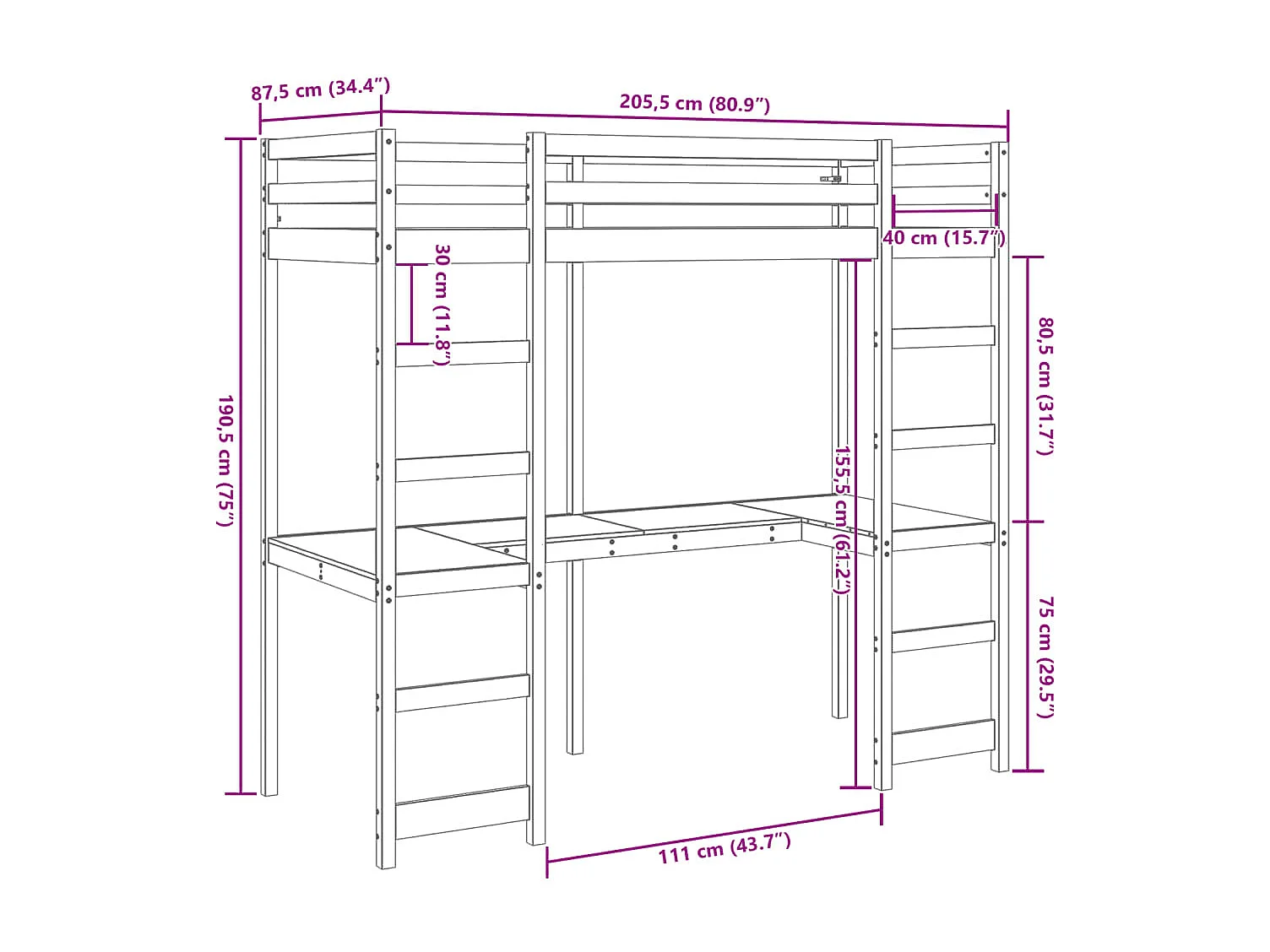 Cadre de lit superposé sans matelas 80x200cm bois de pin massif