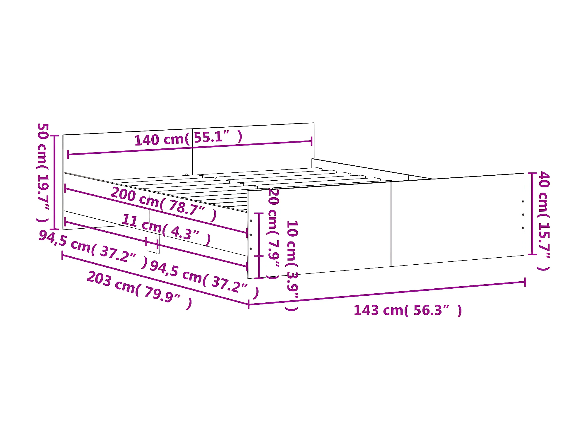 Cadre de lit tête de lit et pied de lit chêne marron 140x200