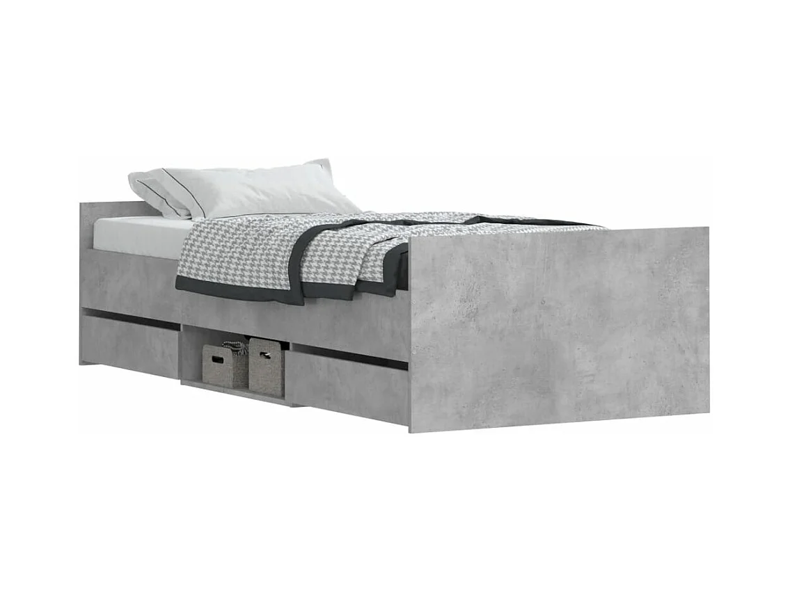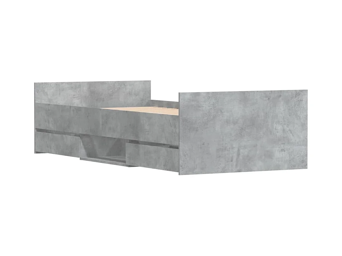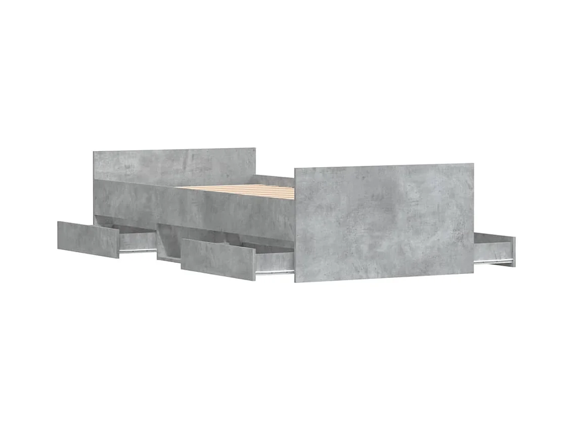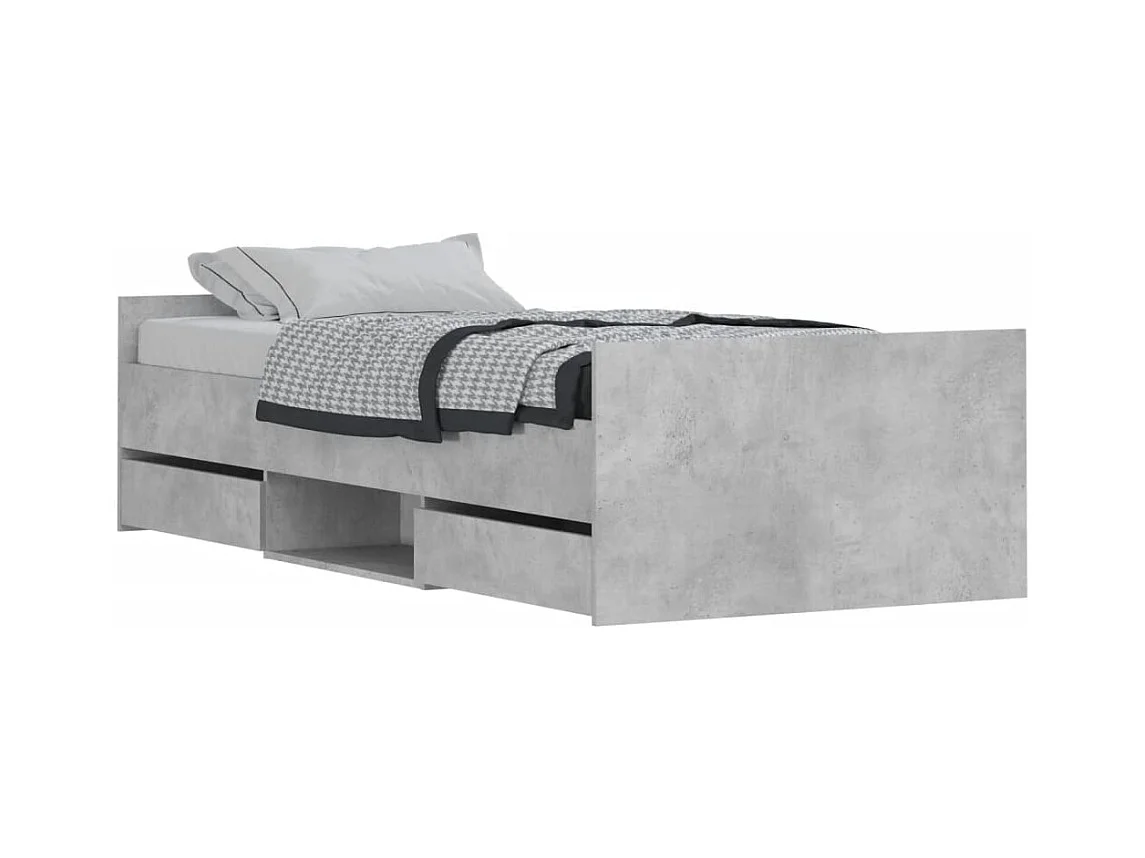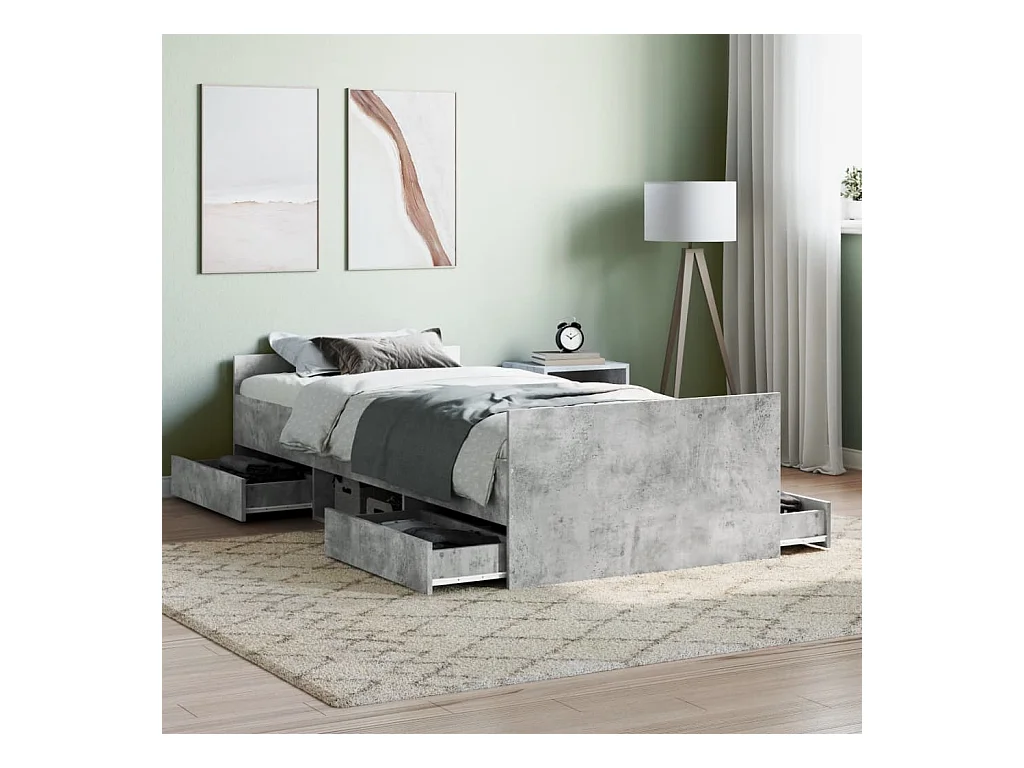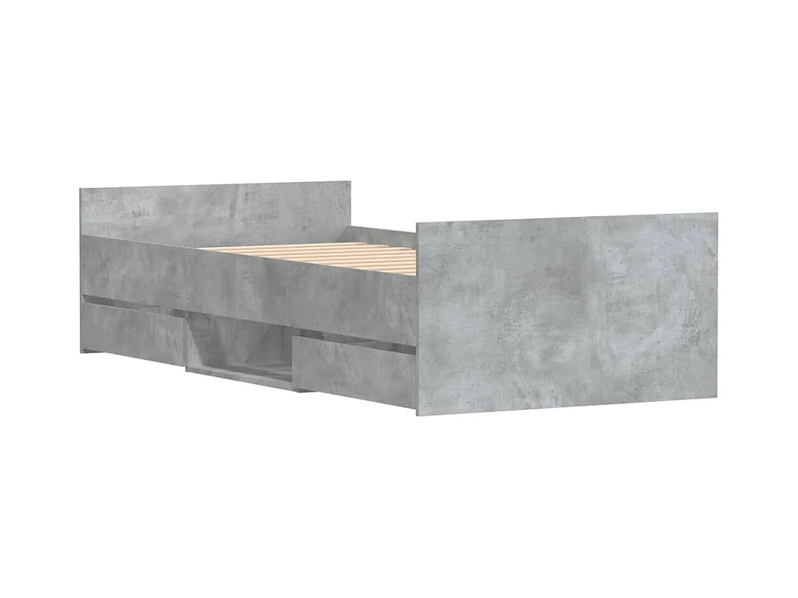 Cadre de lit tête de lit et pied de lit gris béton 90x190