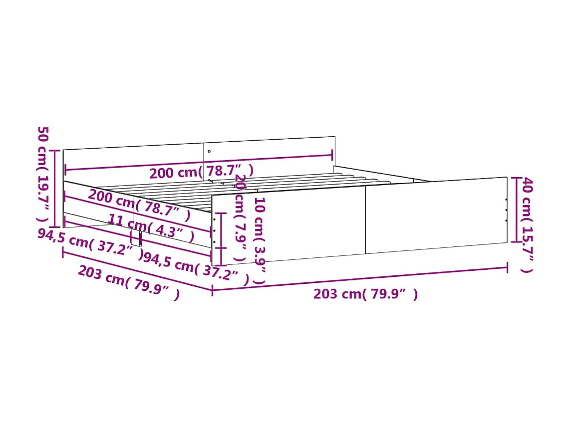 Cadre de lit tête de lit et pied de lit sonoma gris 200x200