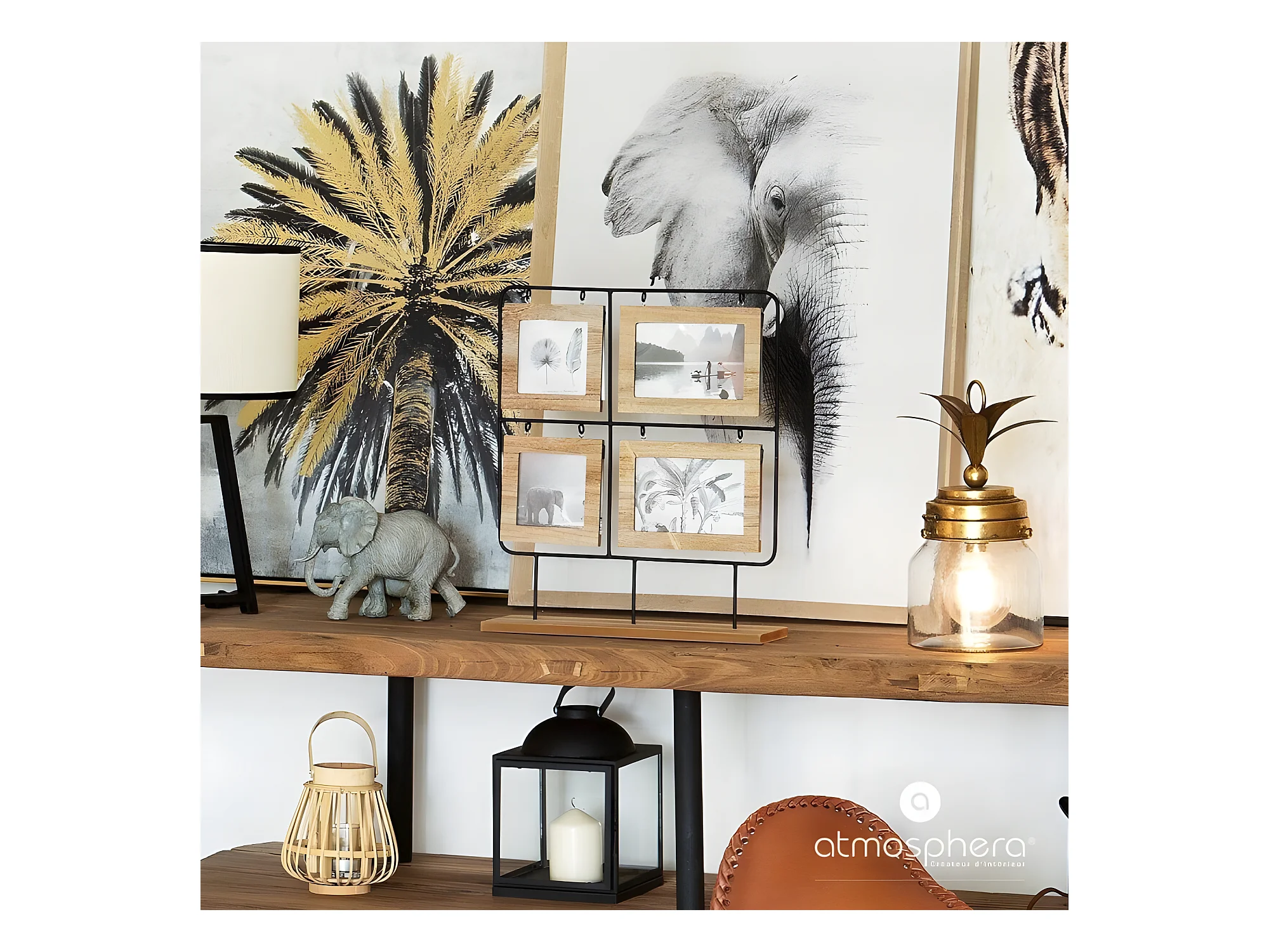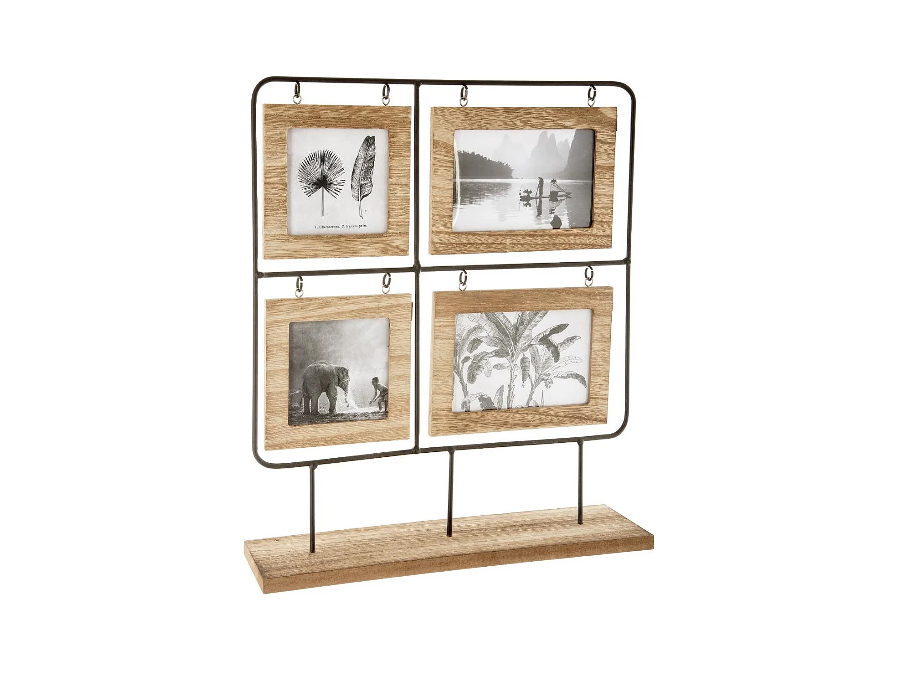 Cadre Pêle-mêle Multivues à poser 4 Photos en bois et métal 36 x 42 cm