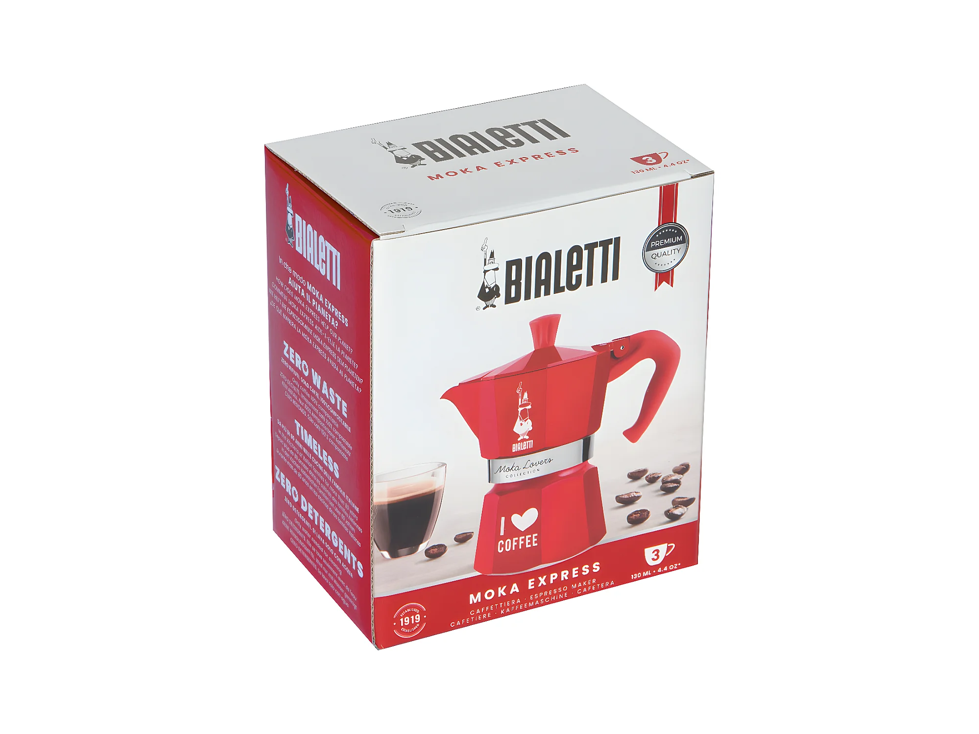 Cafetière Italienne Moka Express I love coffee 3 tasses rouge
