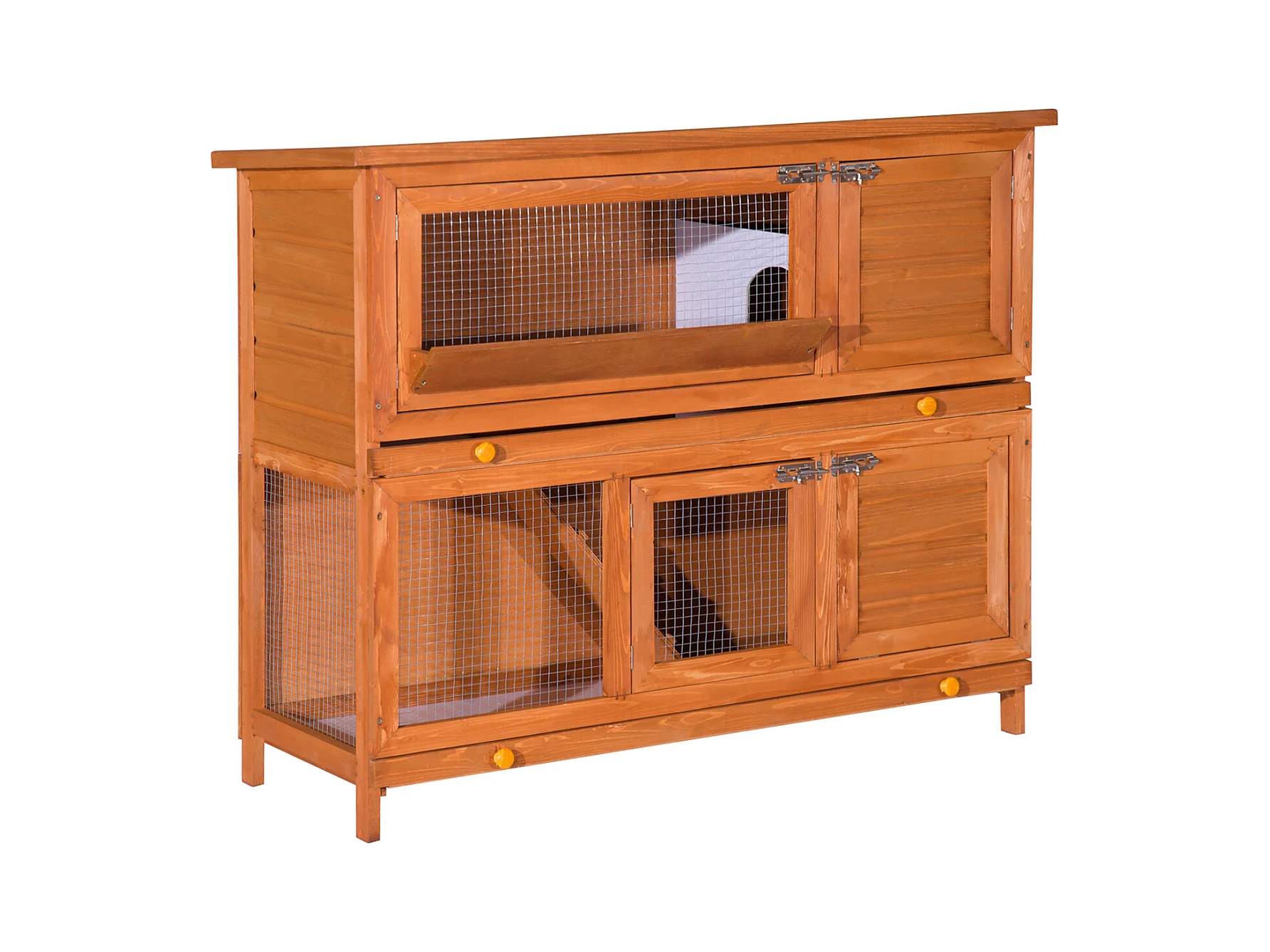 Cage a lapin poulailler clapier en bois de pin de grande taille avec 2 etages 120x48x100 cm