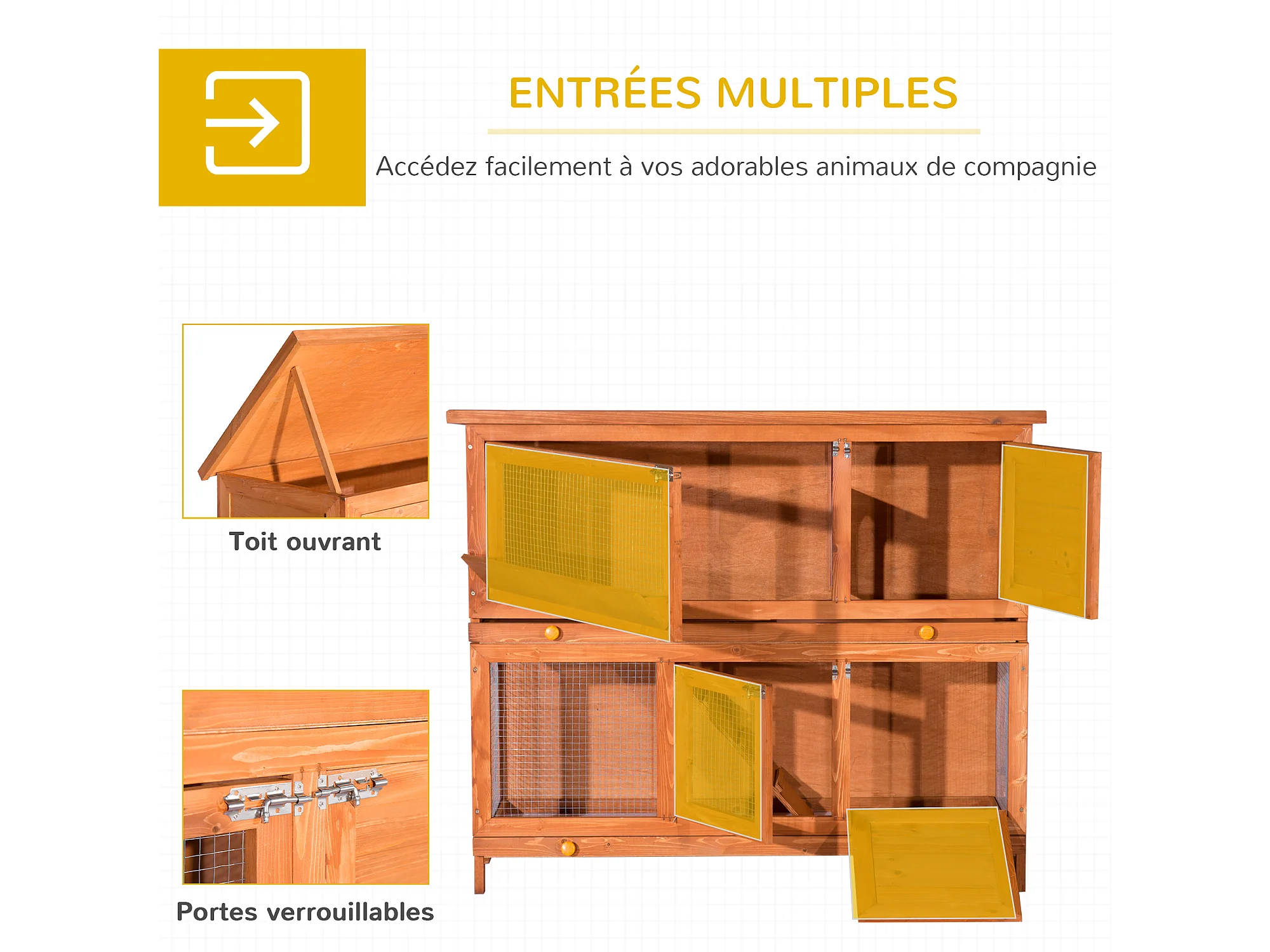 Clapier à lapin cage à lapin double niveau plateaux coulissants 4 portes verrouillables toit ouvrant 90L x 45l x 90H cm