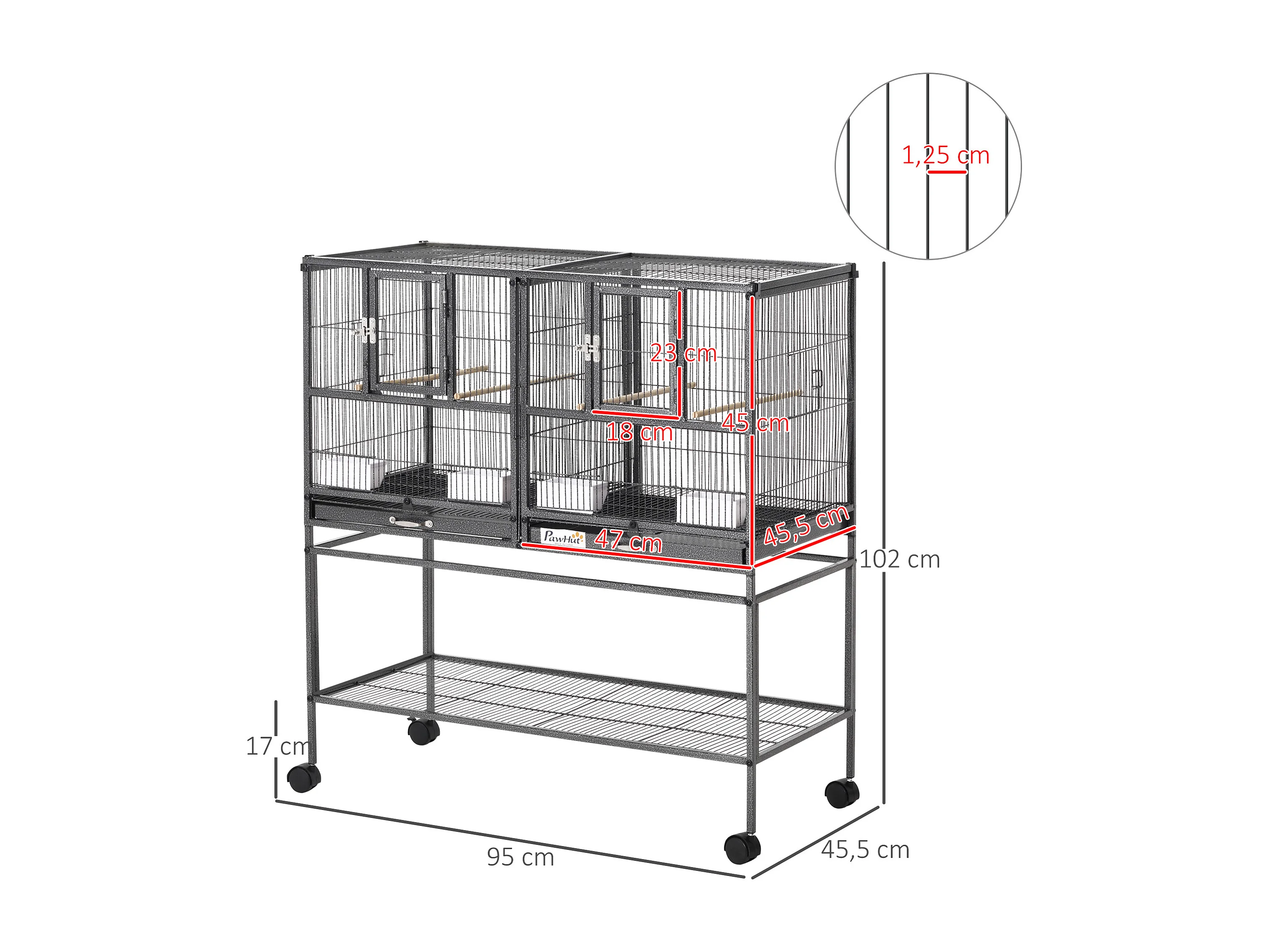Cage à oiseaux avec séparation mangeoire et perchoir 95L x 45l x 102H cm Noir et Gris