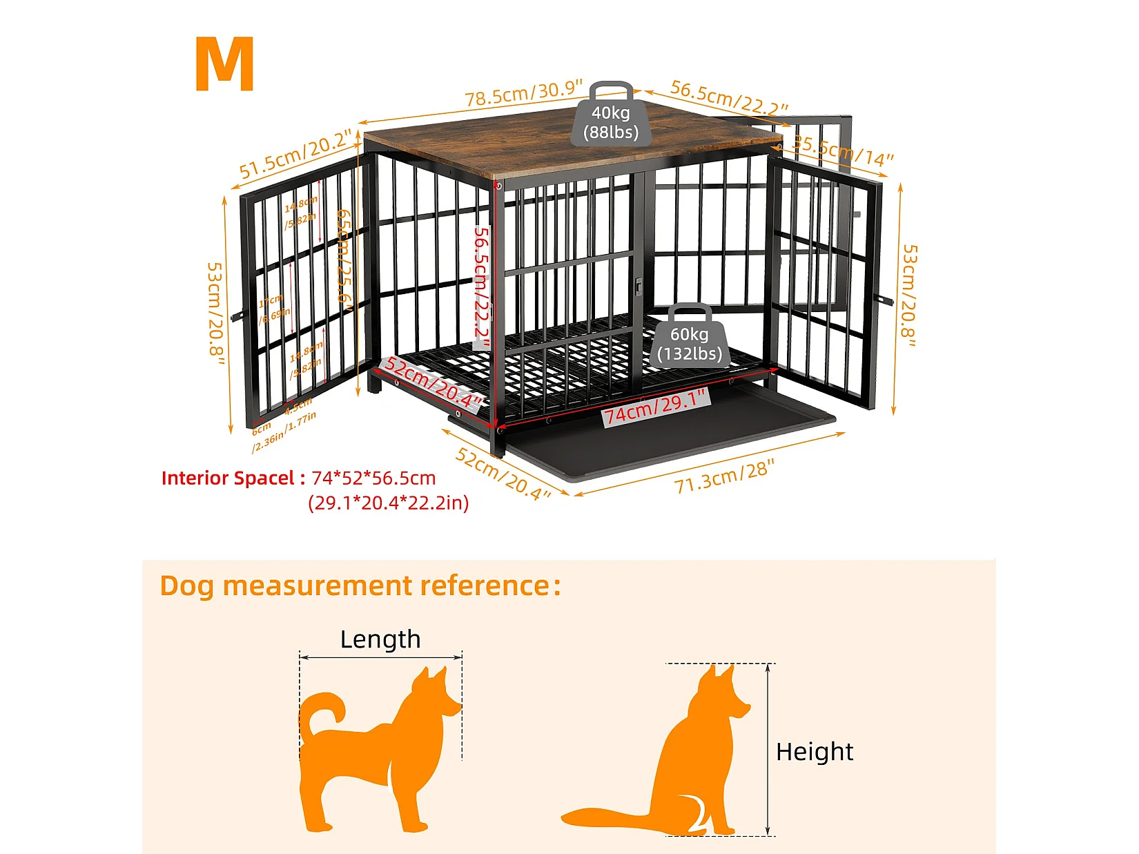 Cage chien caisse pour grand chien interieur maison meuble cages chiens en bois avec 3 porte 78x56x65cm