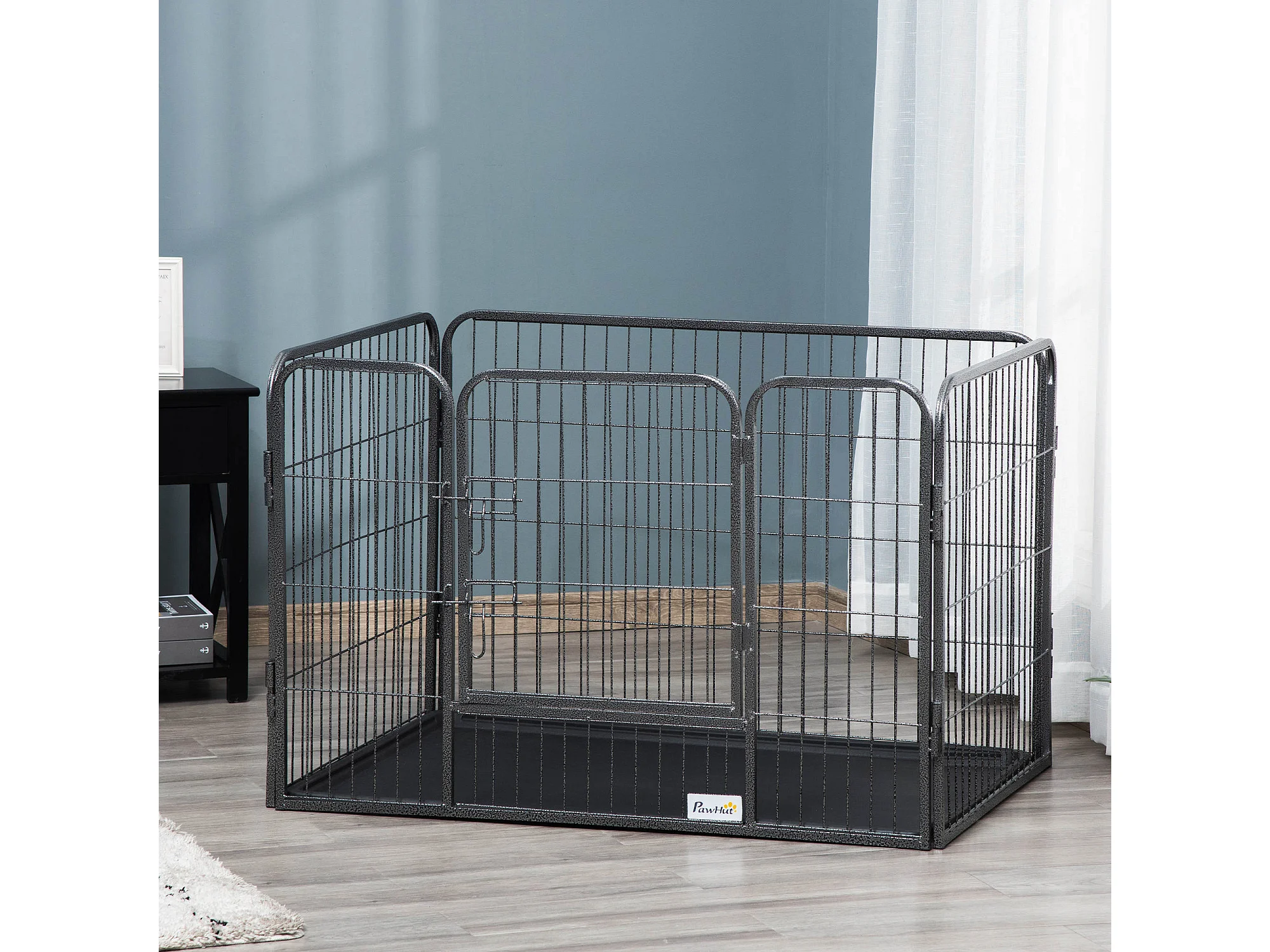 Parc enclos modulable pour chien porte 6 panneaux noir
