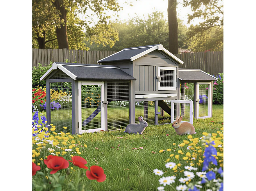 Cage Clapier Enclos lapin Extérieur en bois Haute Qualité pour lapins petits animaux- Modèle : 085 Don Camillo 69x54x85,5cm