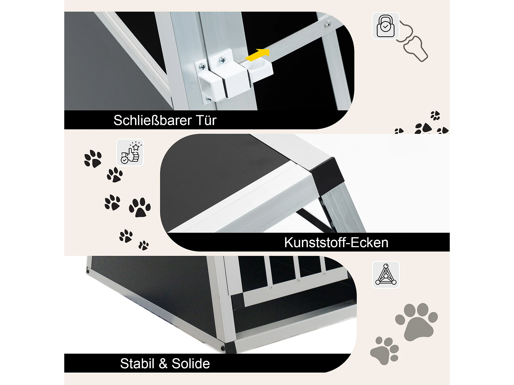 Cage de transport pour chien en aluminium, robuste et légère, aérée, noir et argent, avec fermetures sécurisées (54x69x50cm)