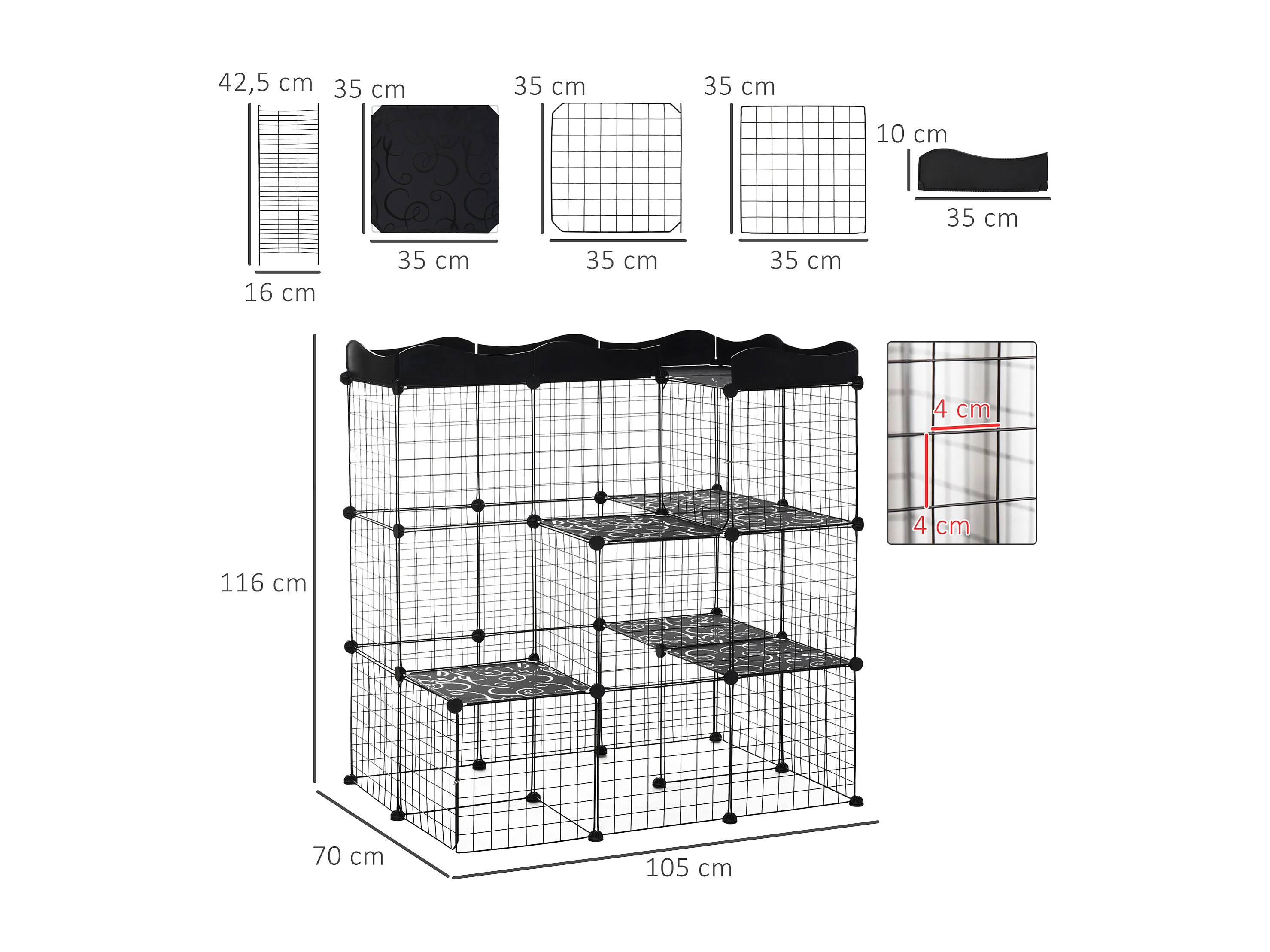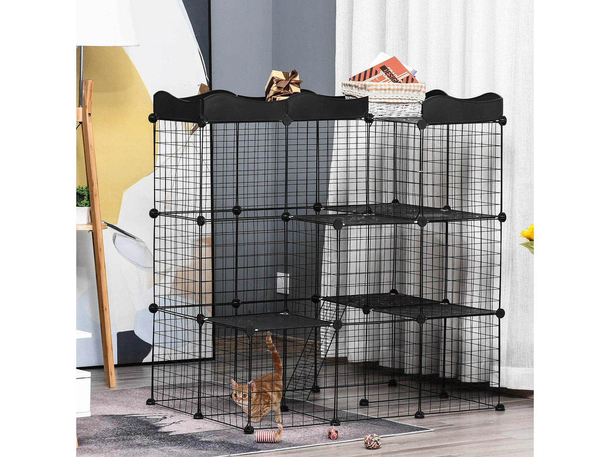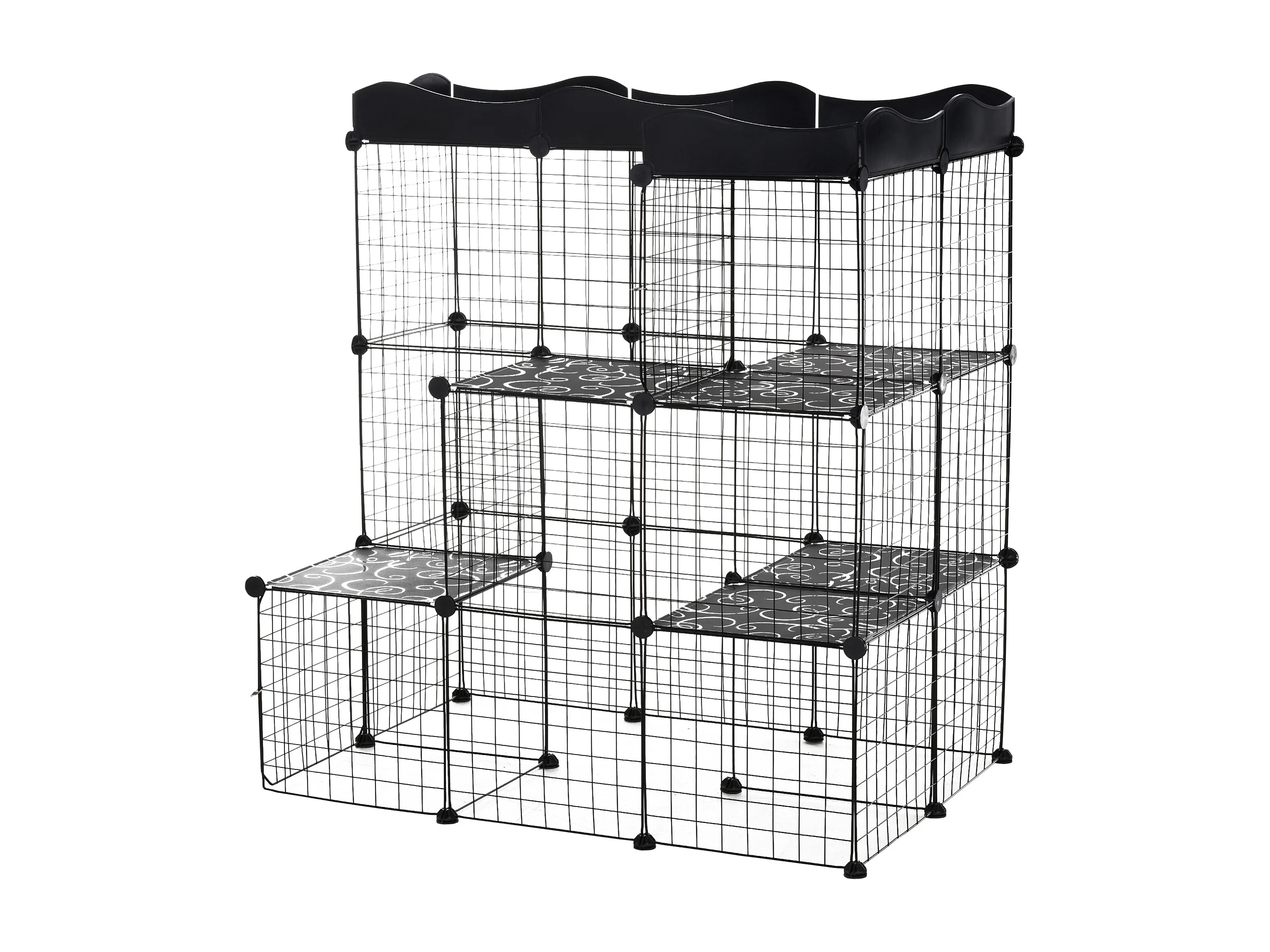 PawHut Cage parc enclos modulable petits animaux de compagnie - dim. standards 140L x 70l x 70H cm - 27 panneaux bords arrondis - résine PP fils d'acier noir