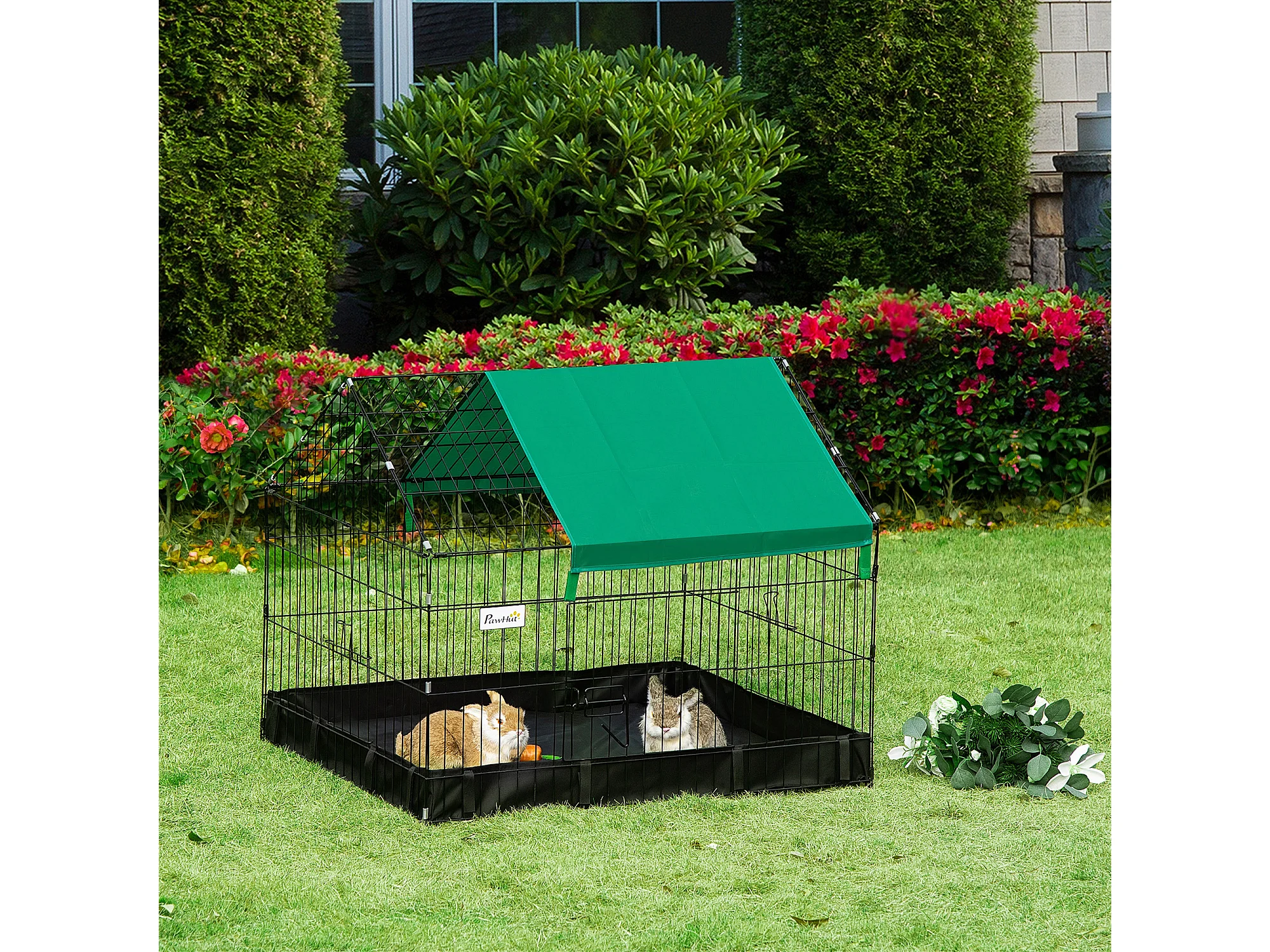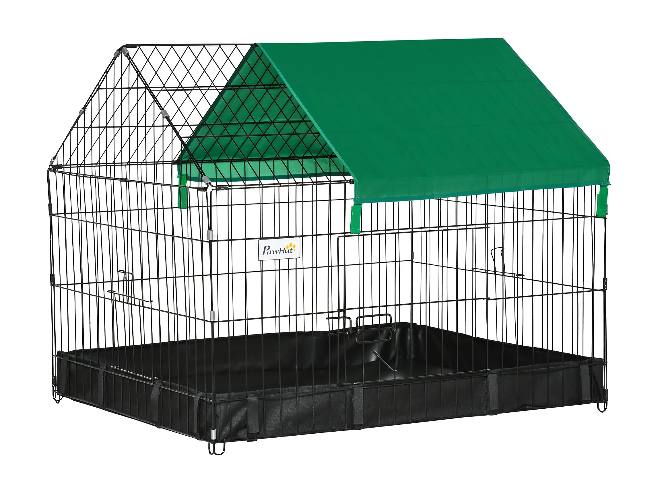 Cage parc enclos rongeurs dim. 90L x 75l x 75H cm - bâche de sol/toit imperméable, porte, trappe - acier oxford noir vert