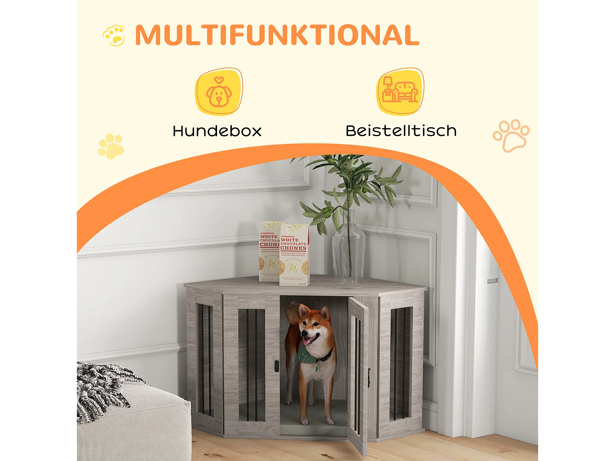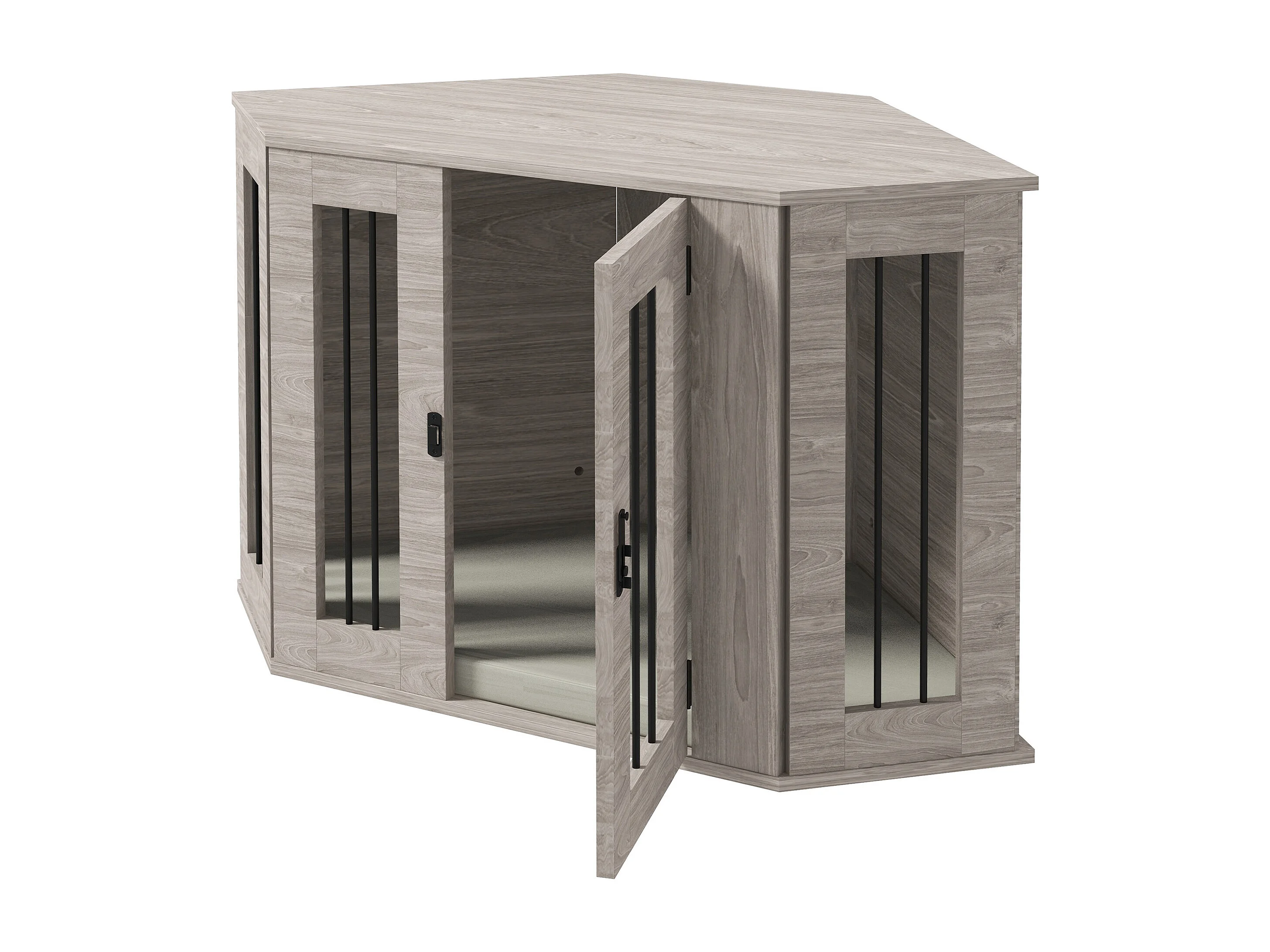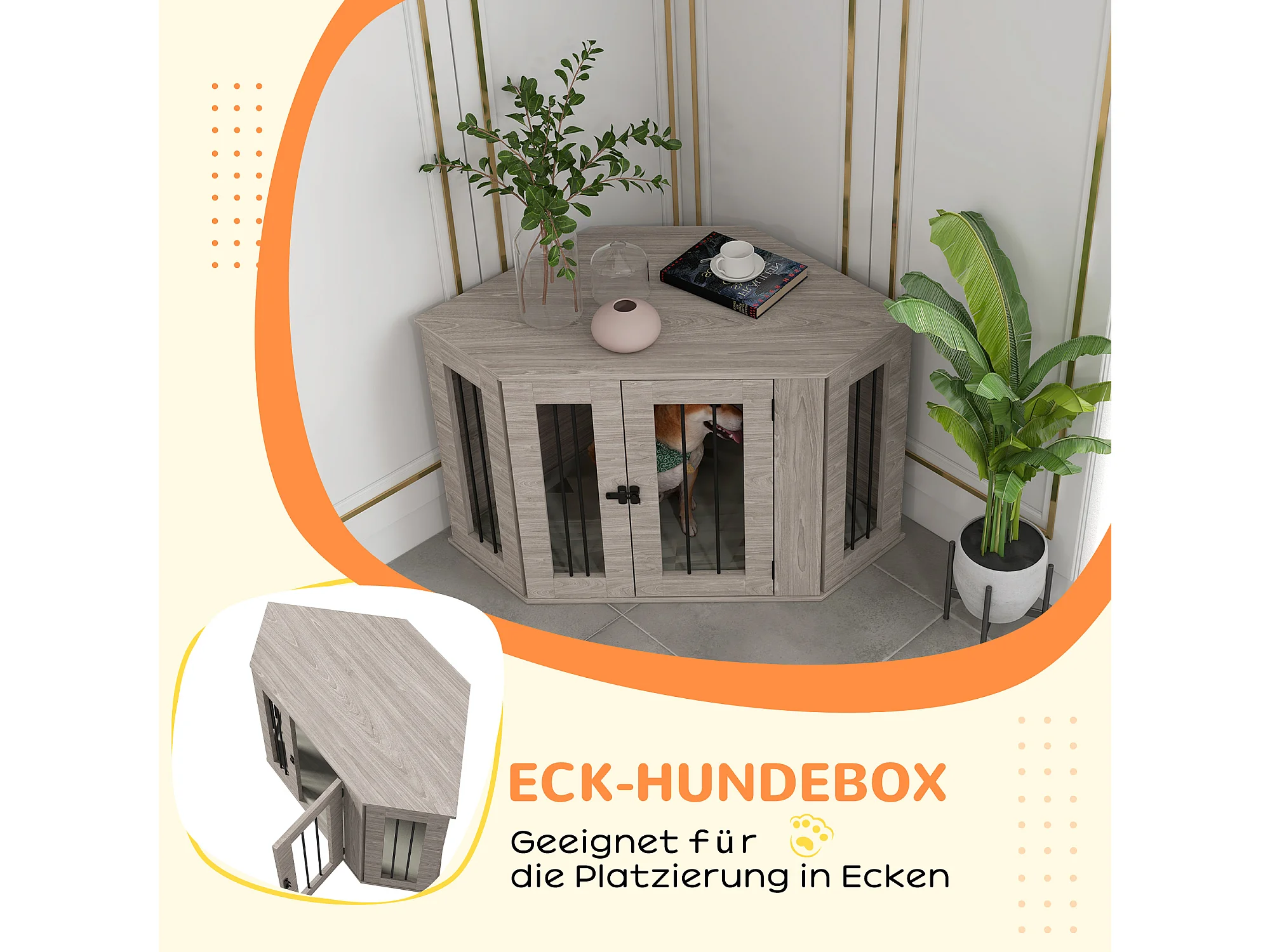 Cage pour chien rectangulaire avec coussin et verrou, en contreplaqué, noyer, pour chiens de taille moyenne (104x55x63cm)