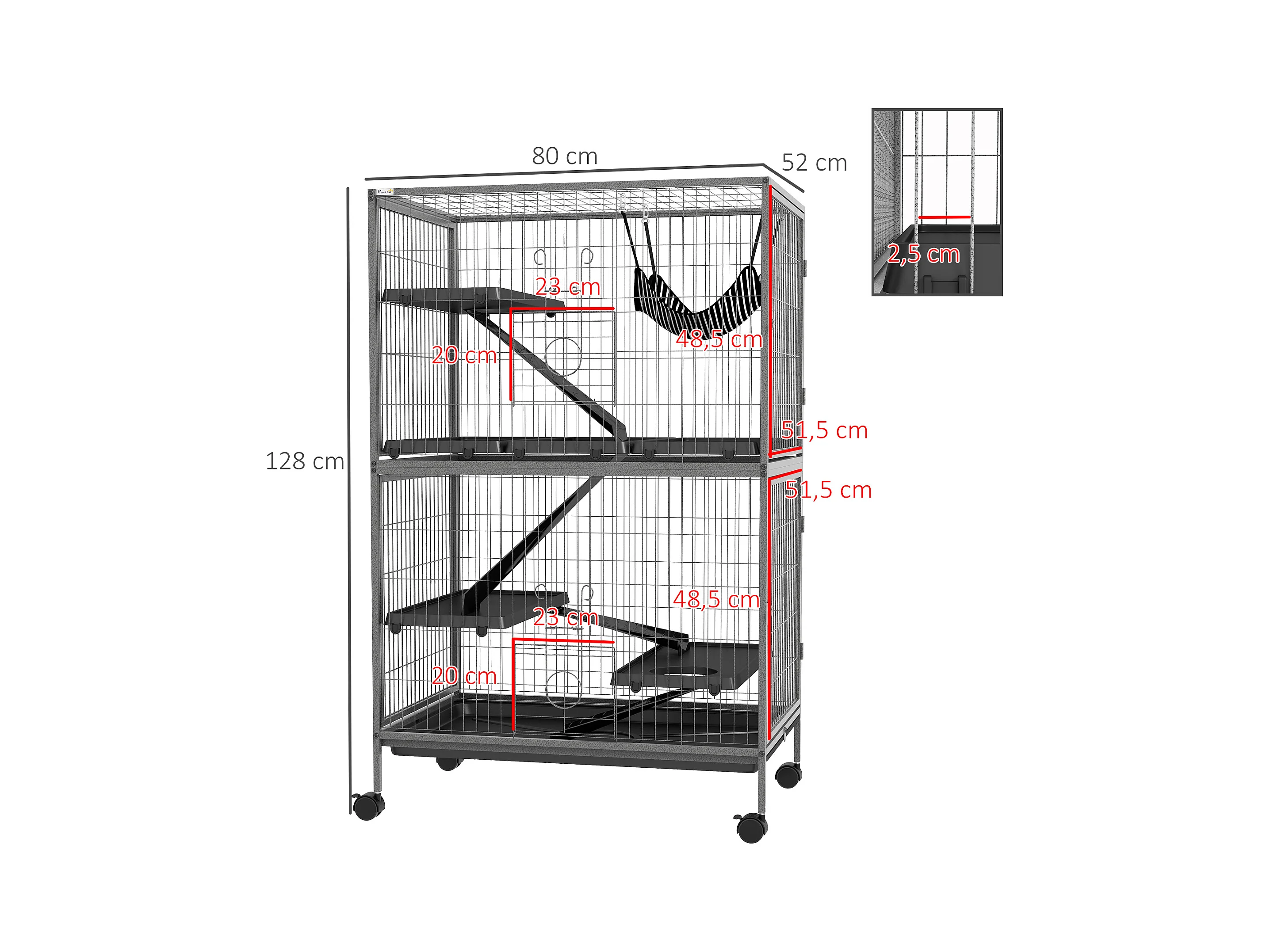 Cage pour petits animaux portable avec 2 portes hamac métal PP 52 x 52 x 113,5 cm gris