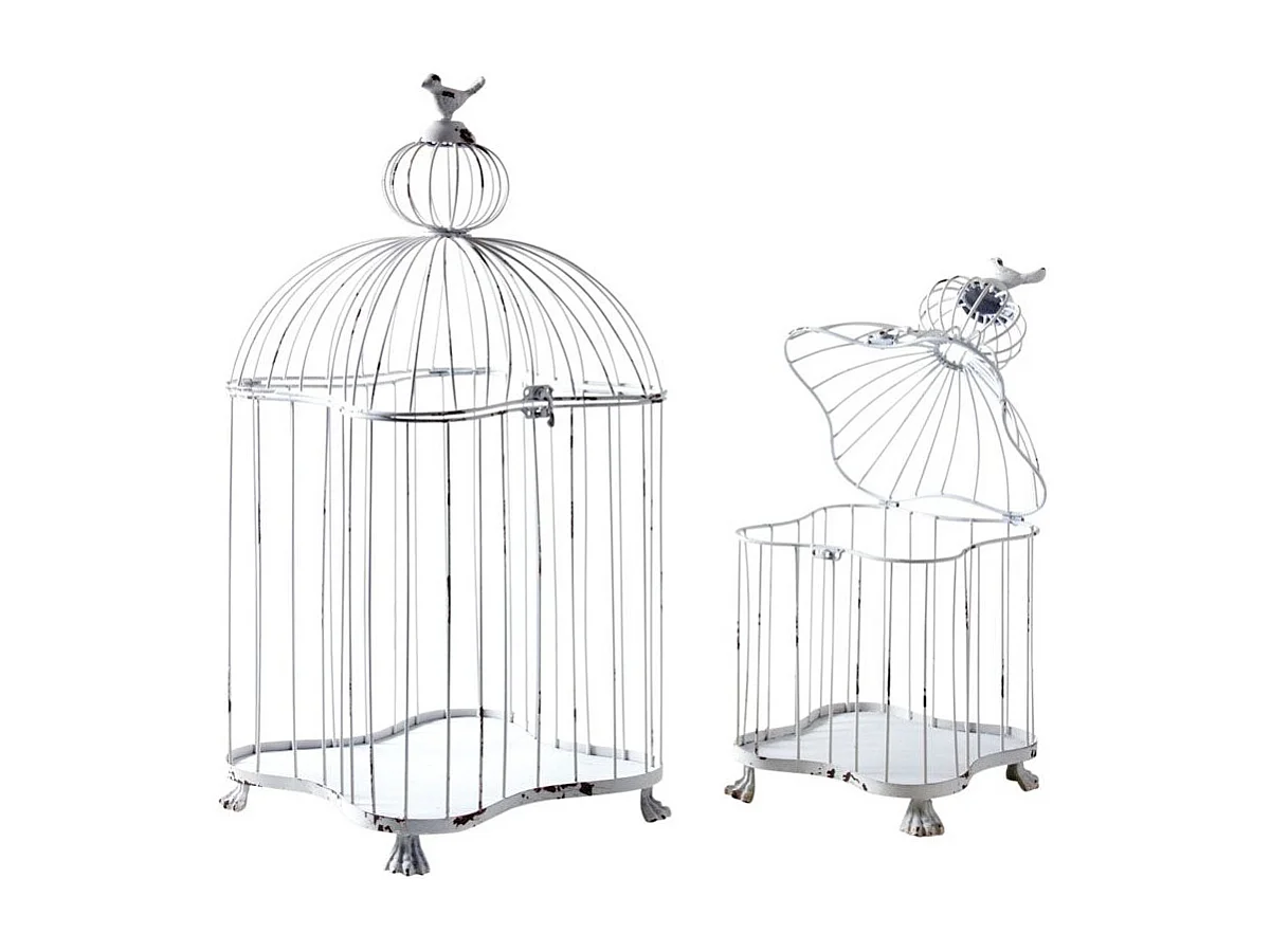 Cages en métal laqué blanc vieilli (Lot de 2)