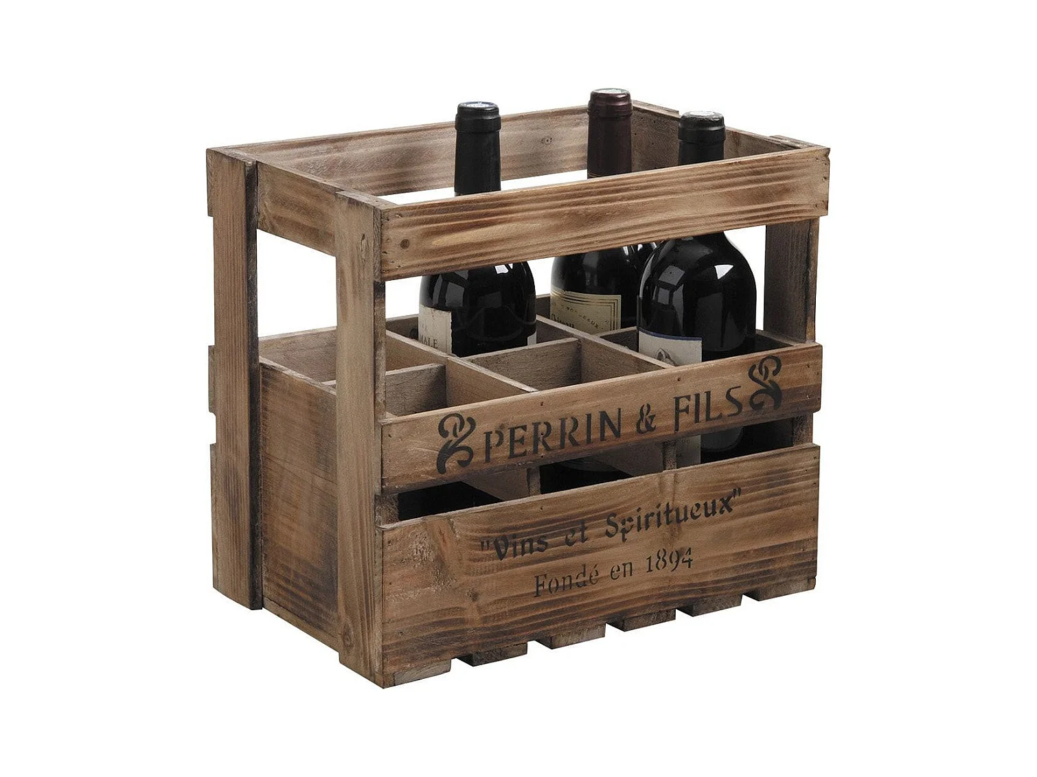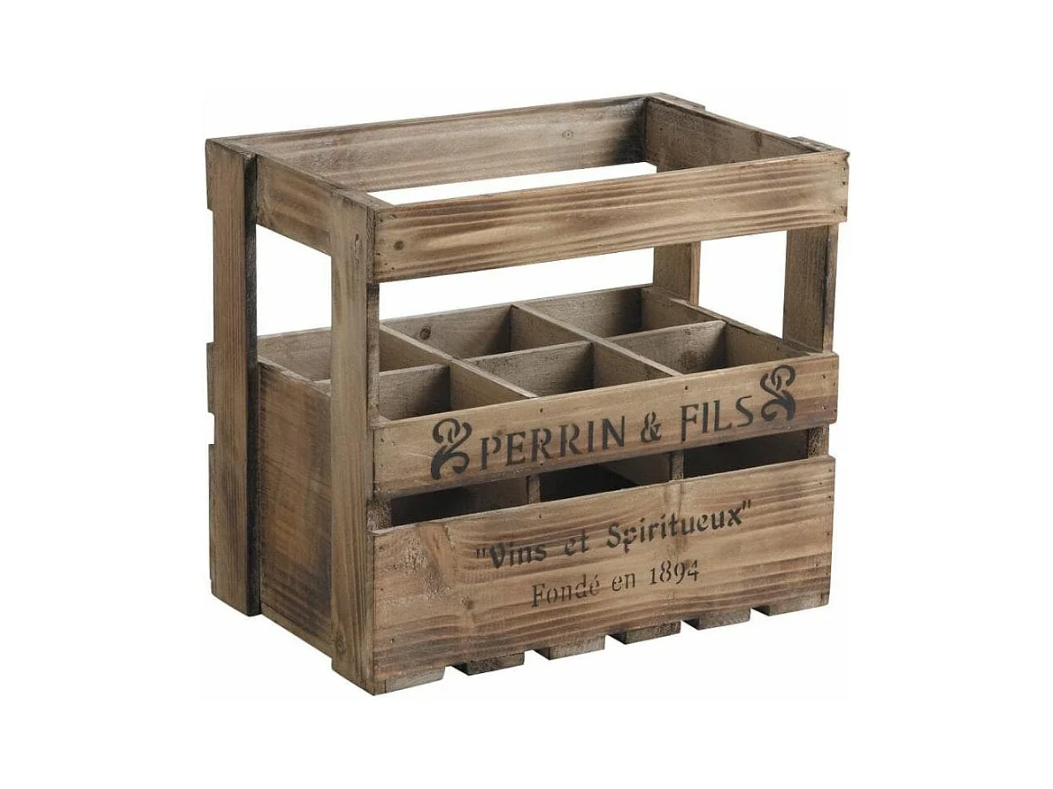 Caisse en bois vieilli 6 bouteilles Perrin et Fils