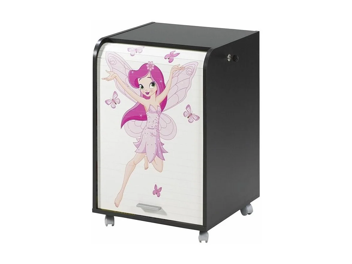 Caisson à rideau sur roulettes 2 tiroirs noir imprimé petite fée Orga 70cm