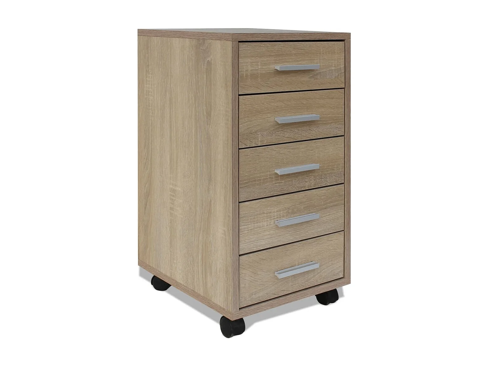 Caisson à tiroir de bureau avec roulettes 5 tiroirs Chêne FR410129