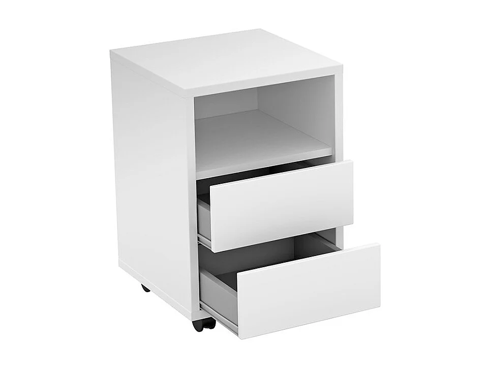 Caisson blanc à roulettes MELTO – 2 tiroirs et 1 niche – Rangement compact et mobile
