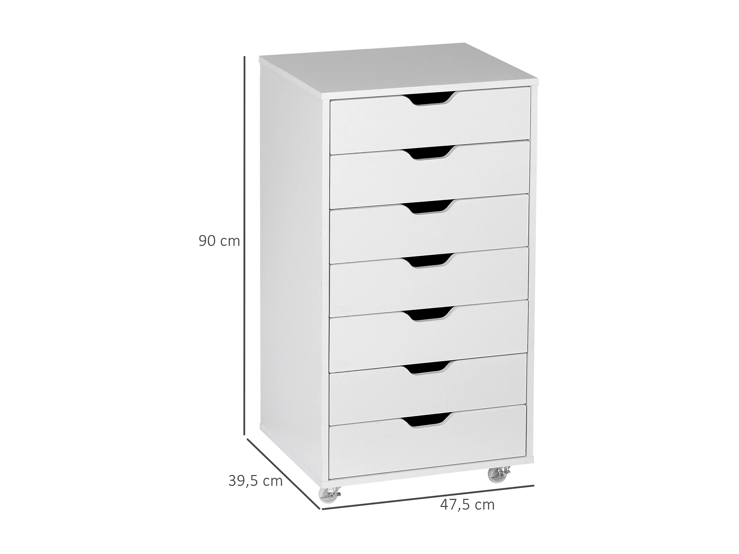 Caisson bureau - rangement bureau 7 tiroirs - dim. 47,5L x 39,5l x 90H cm - blanc