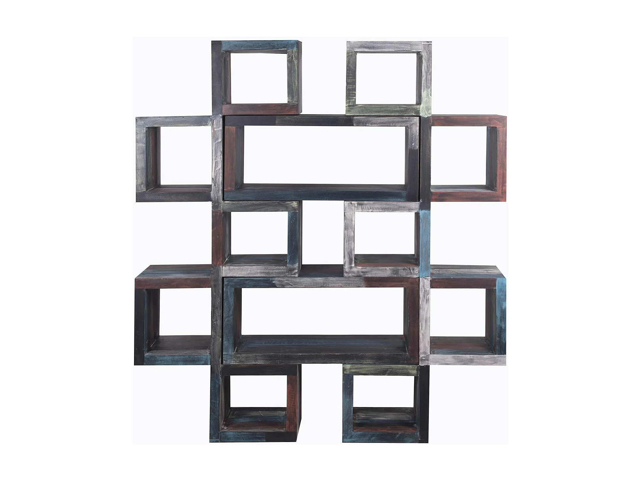 Bibliothèque en bois de manguier naturel sculpté à la main
