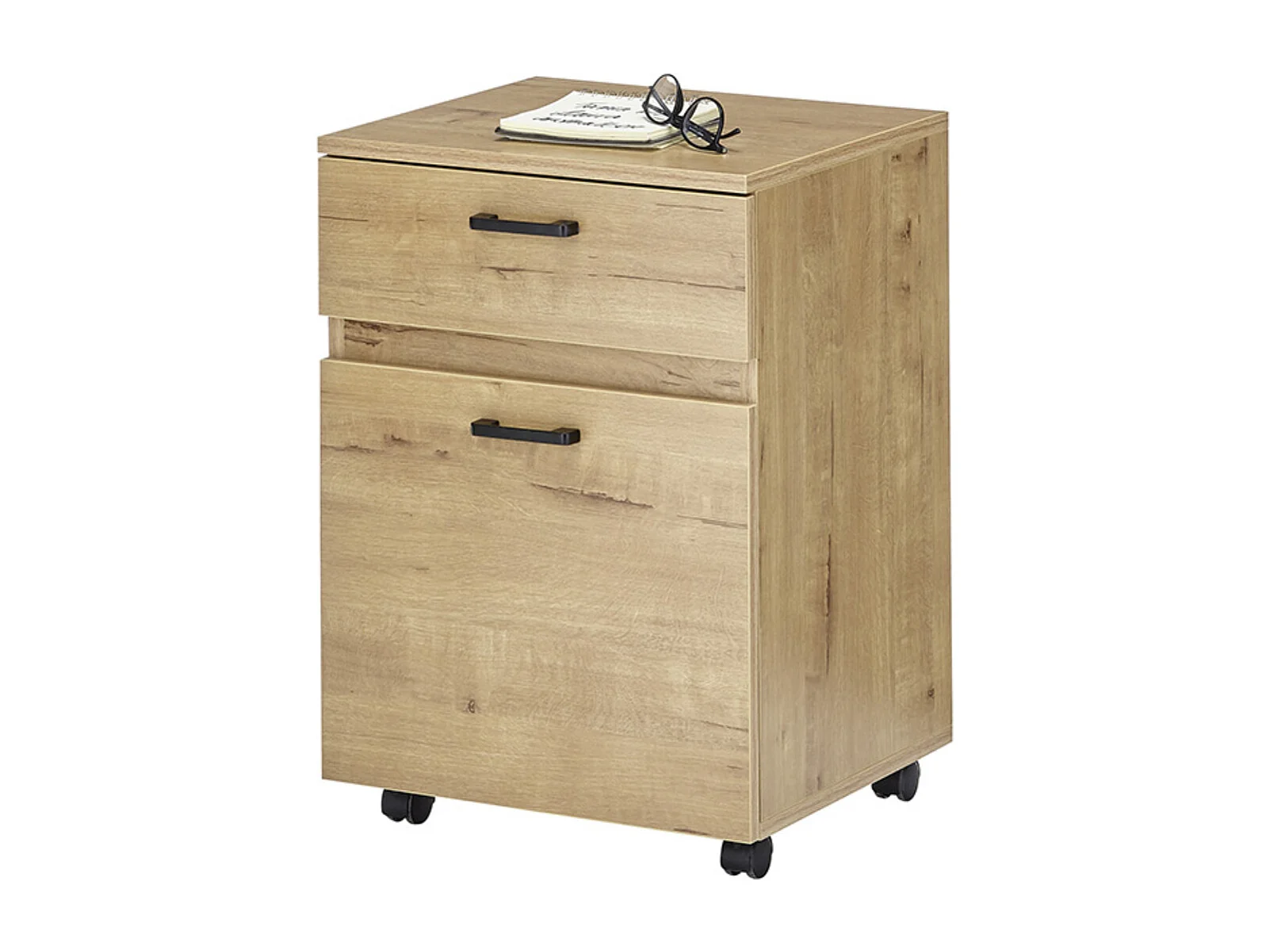 Caisson de bureau coloris chêne et métal noir - Longueur 45 x Hauteur 65 x Profondeur 40 cm