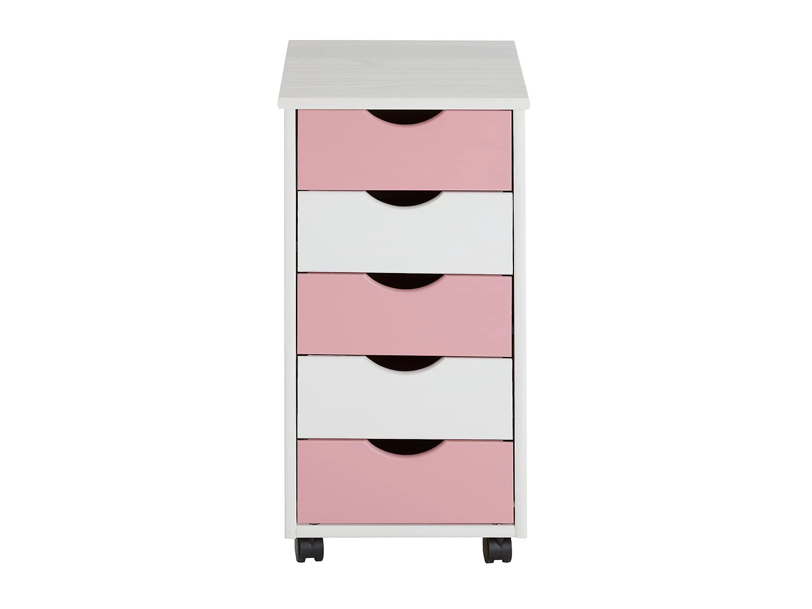 Caisson de bureau LAGOS meuble de rangement sur roulettes avec 5 tiroirs, en pin massif lasuré blanc et rose