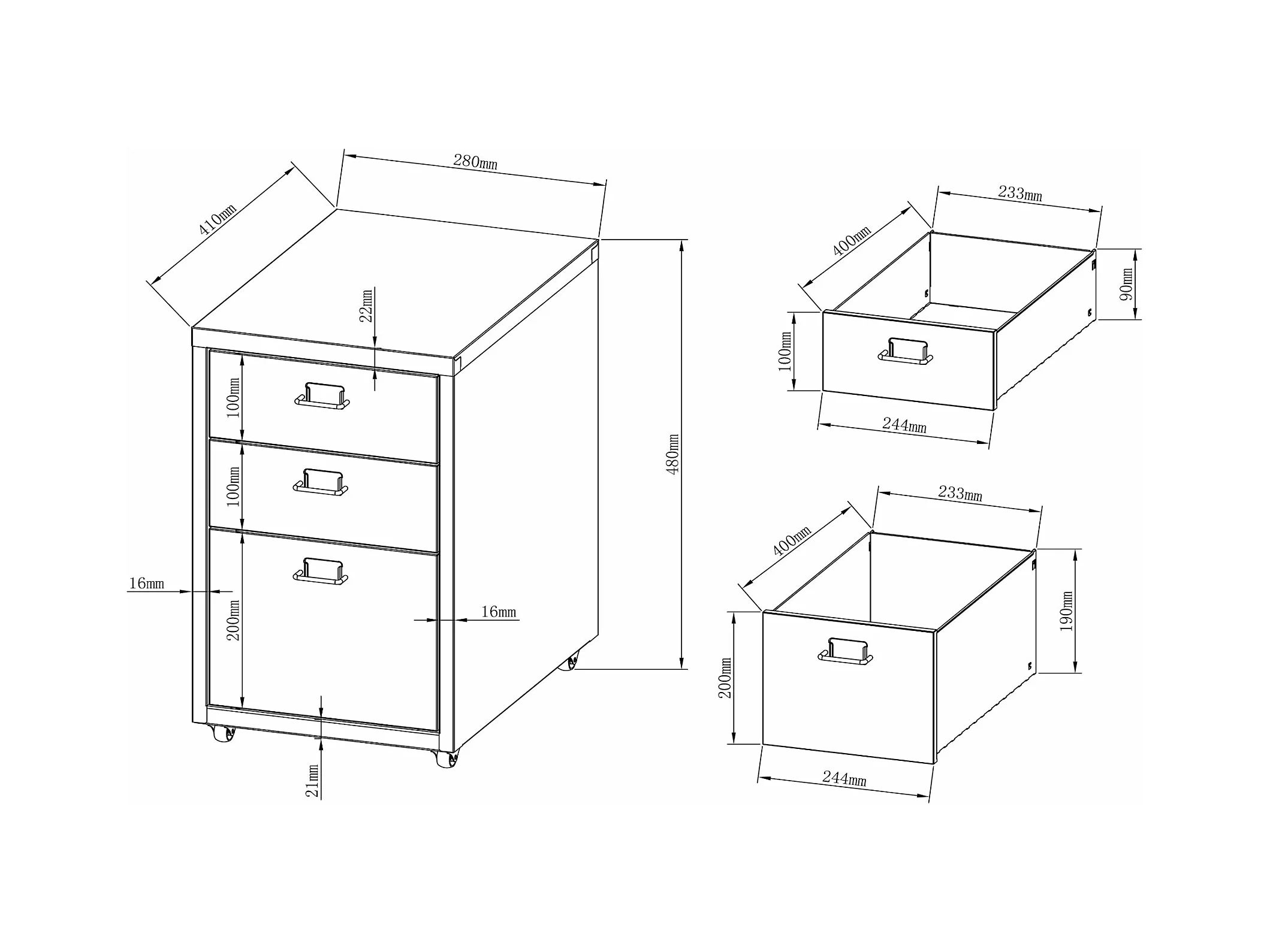 Caissons à tiroirs meuble métal grise 28 x 41 x 69 cm DEC024574