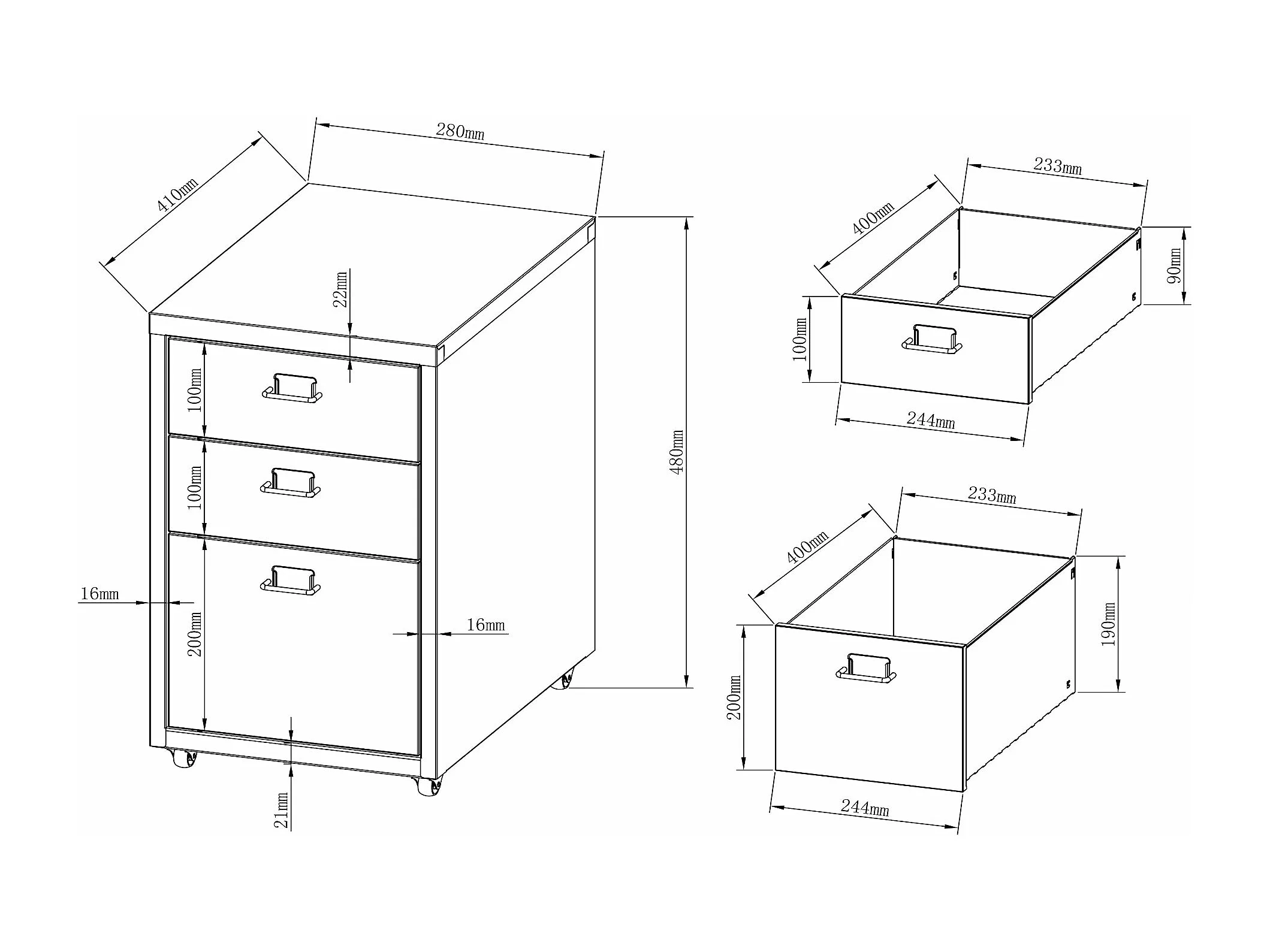 Caissons à tiroirs meuble métal grise 28 x 41 x 69 cm DEC024574