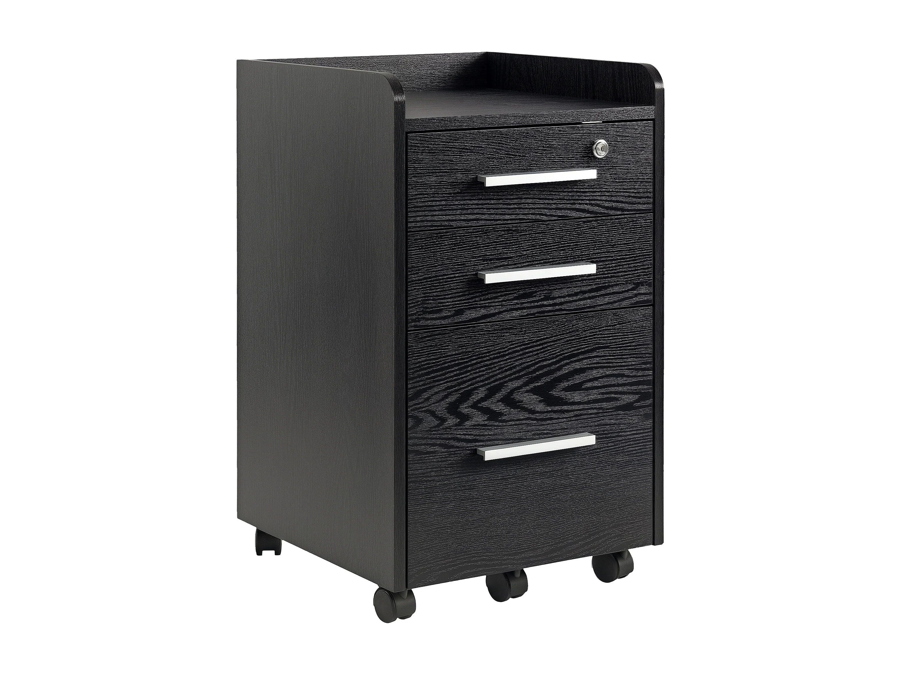 Caisson de bureau rangement bureau sur roulettes 3 tiroirs 1 verrouillable 1 trieur dossiers effet bois noir