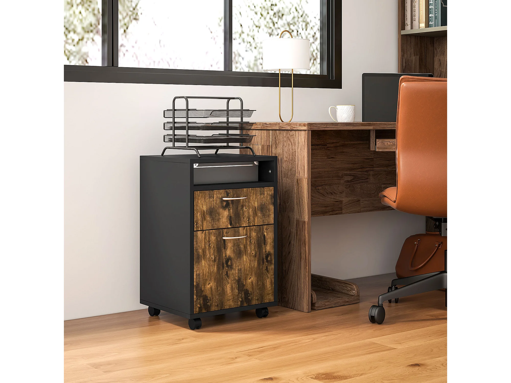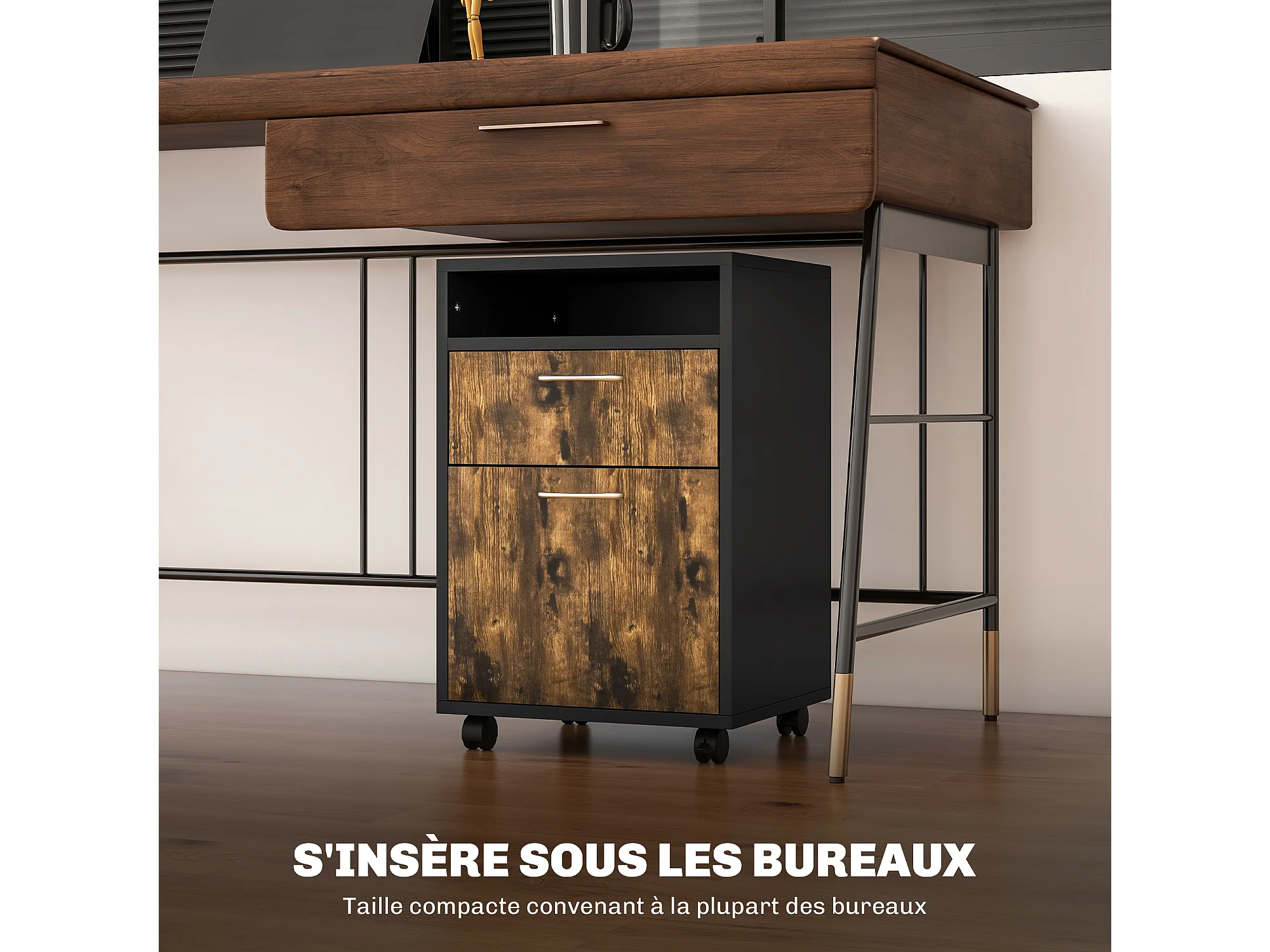Caisson de bureau rangement bureau sur roulettes tiroir placard niche panneaux particules noir bois