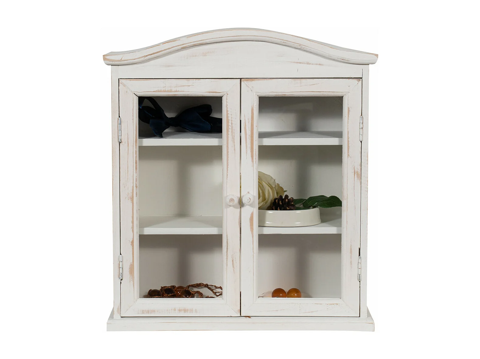 Cabinet mural en verre à 3 portes arquées pour cuisine, salon et salle de bain, métal et verre, blanc (90x19.5x70 cm)