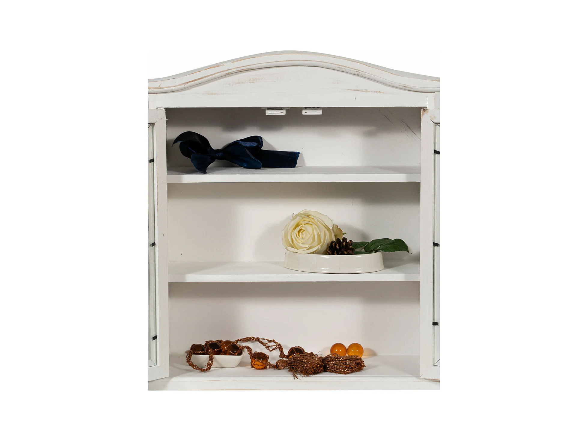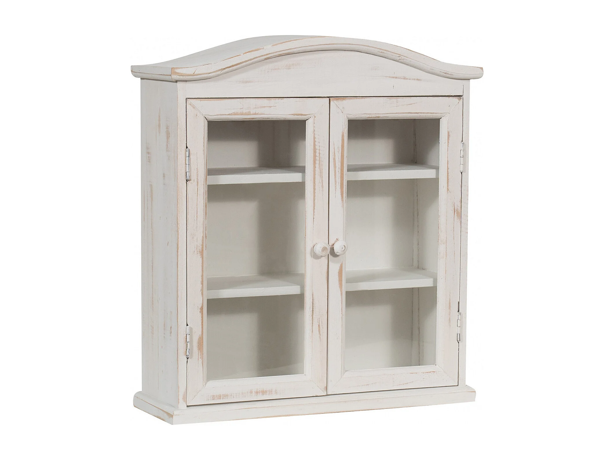 Caisson de cuisine 42x48x15 cm - 3 Etagères - 2 Portes Vitrées - Blanc Antique - SHABBY CHARME - 1 meuble haut - Vitrine murale pour salle de bain et salon