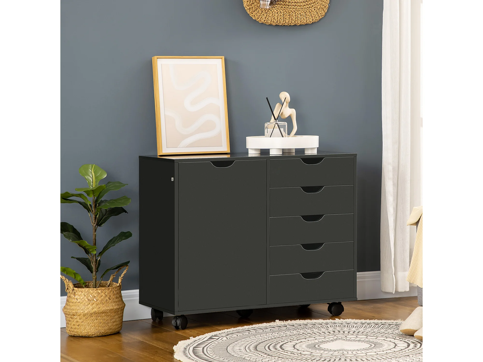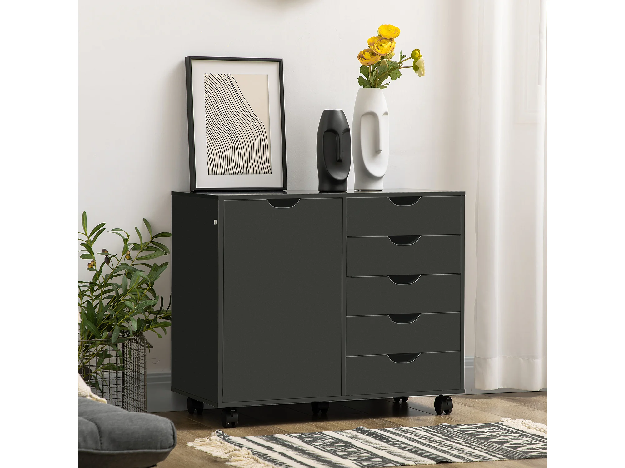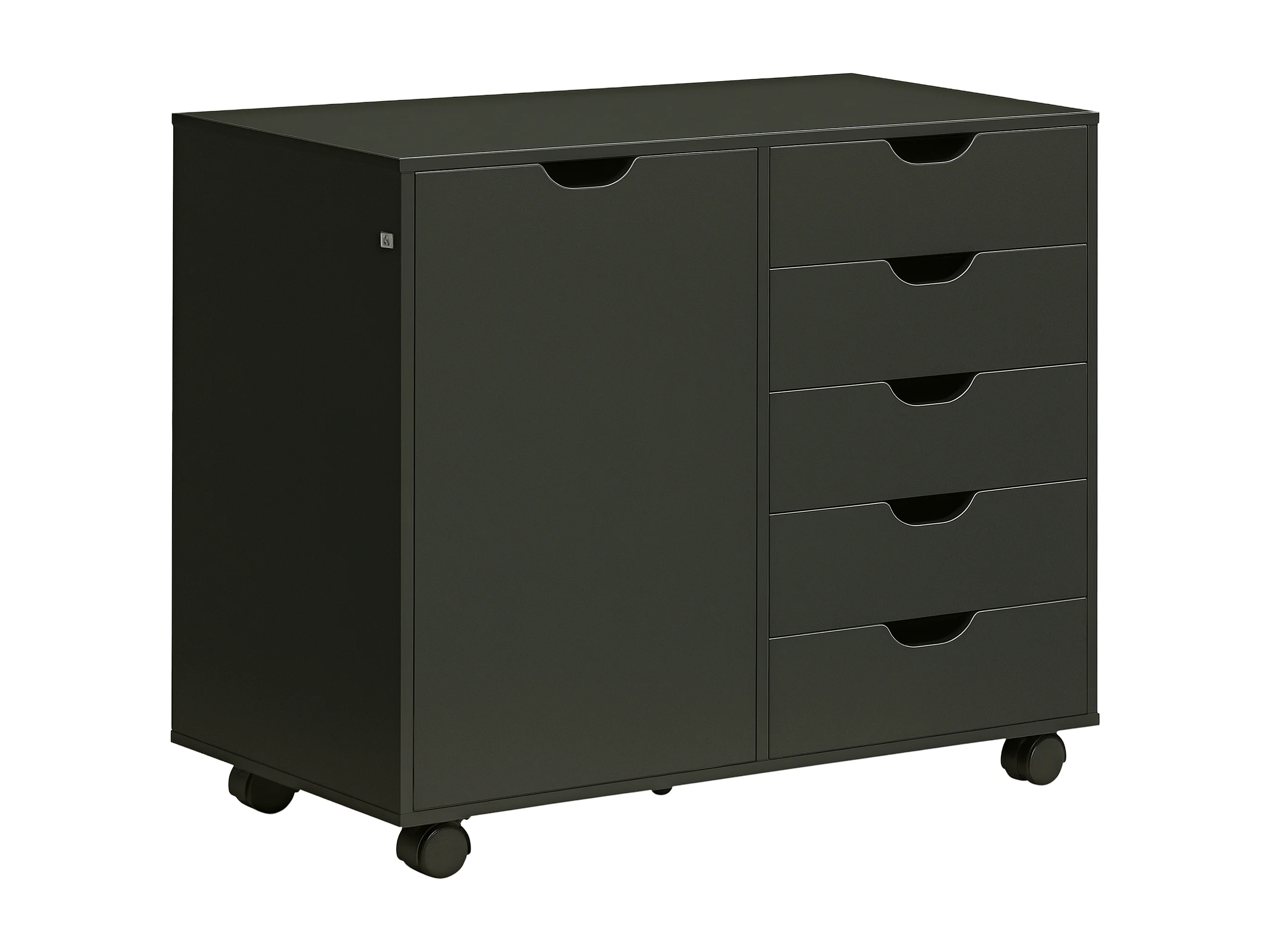 Caisson rangement bureau support d'imprimante 5 tiroirs porte étagère dim. 78L x 40l x 66H cm noir