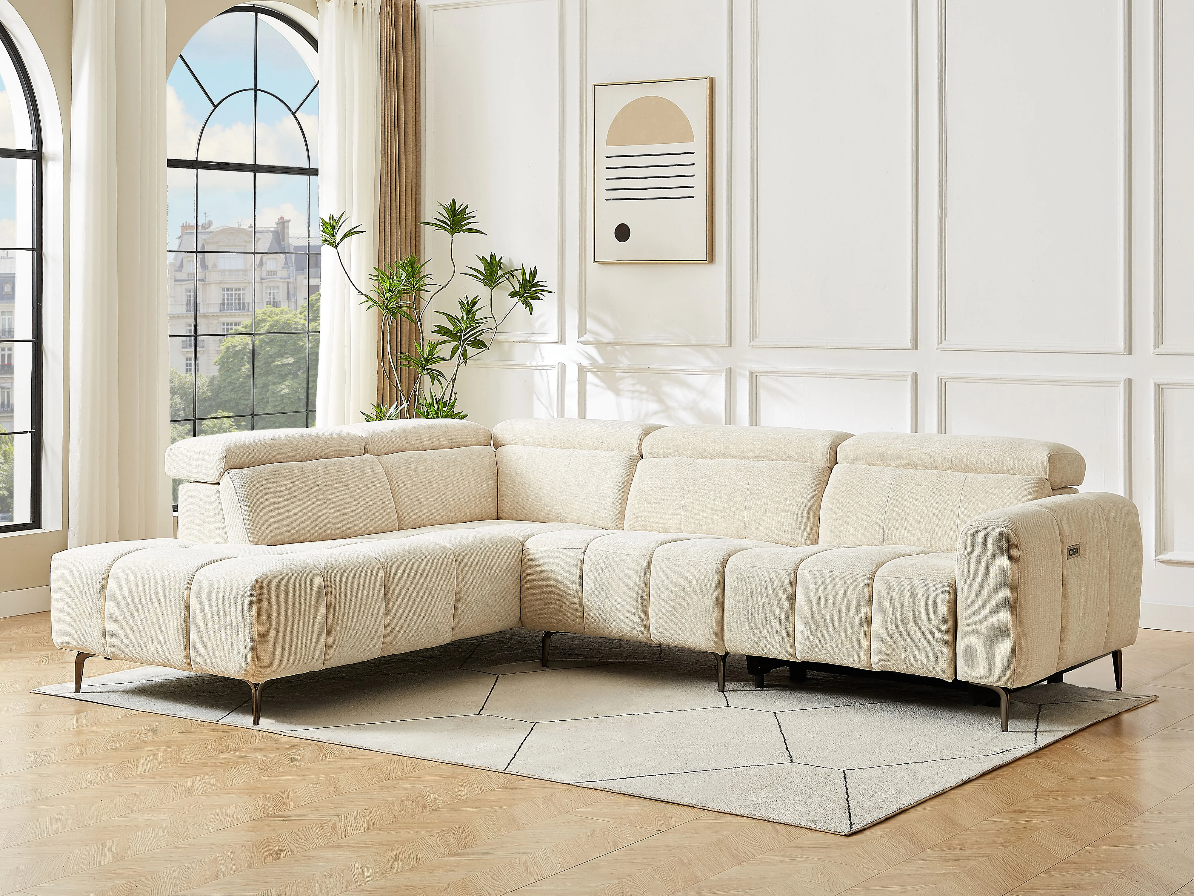 Canapé d'angle gauche relax électrique en tissu texturé beige CALDORIA