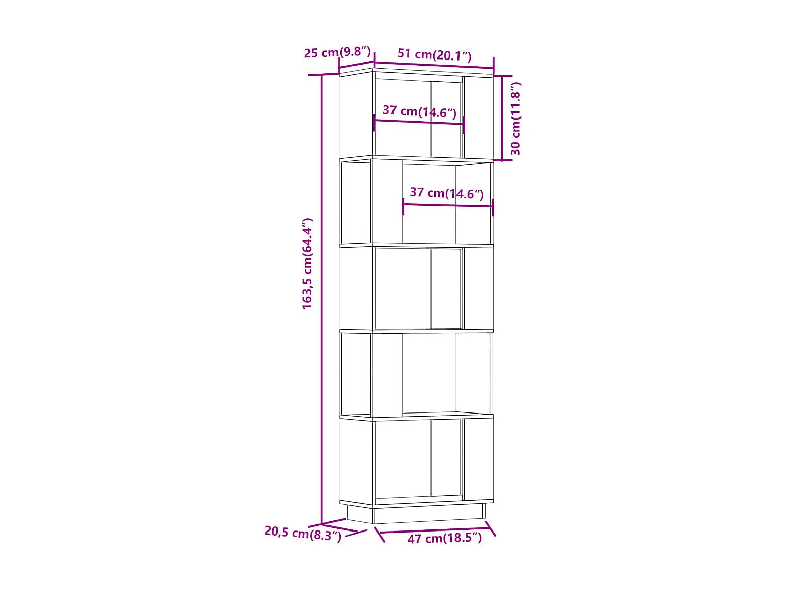 Caledonia Bibliothèque/Séparateur de pièce Gris 51x25x163,5 cm Pin solide