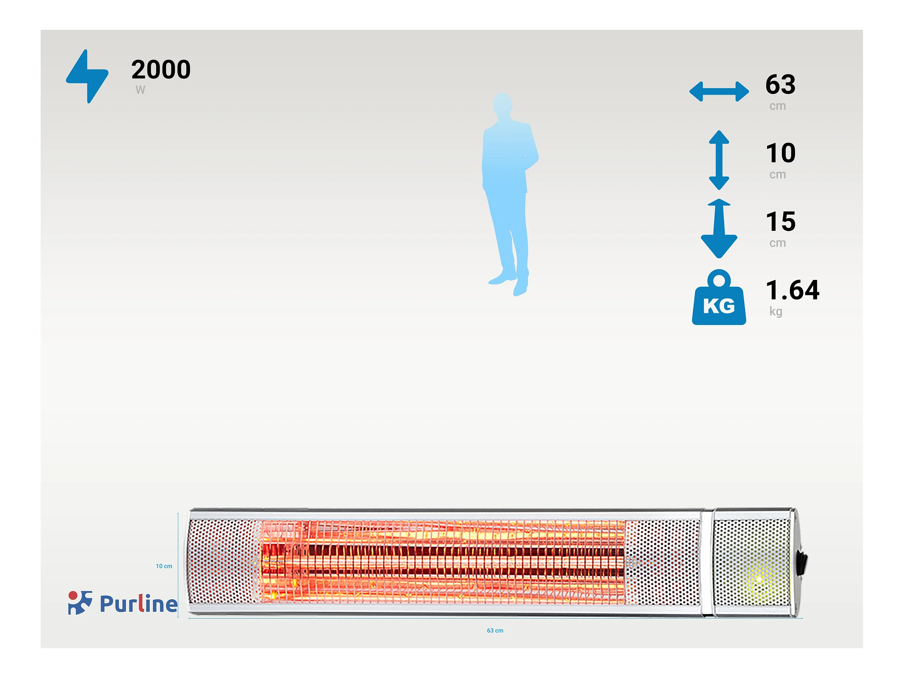 Chauffage de terrasse infrarouge - 2000W - Argenté