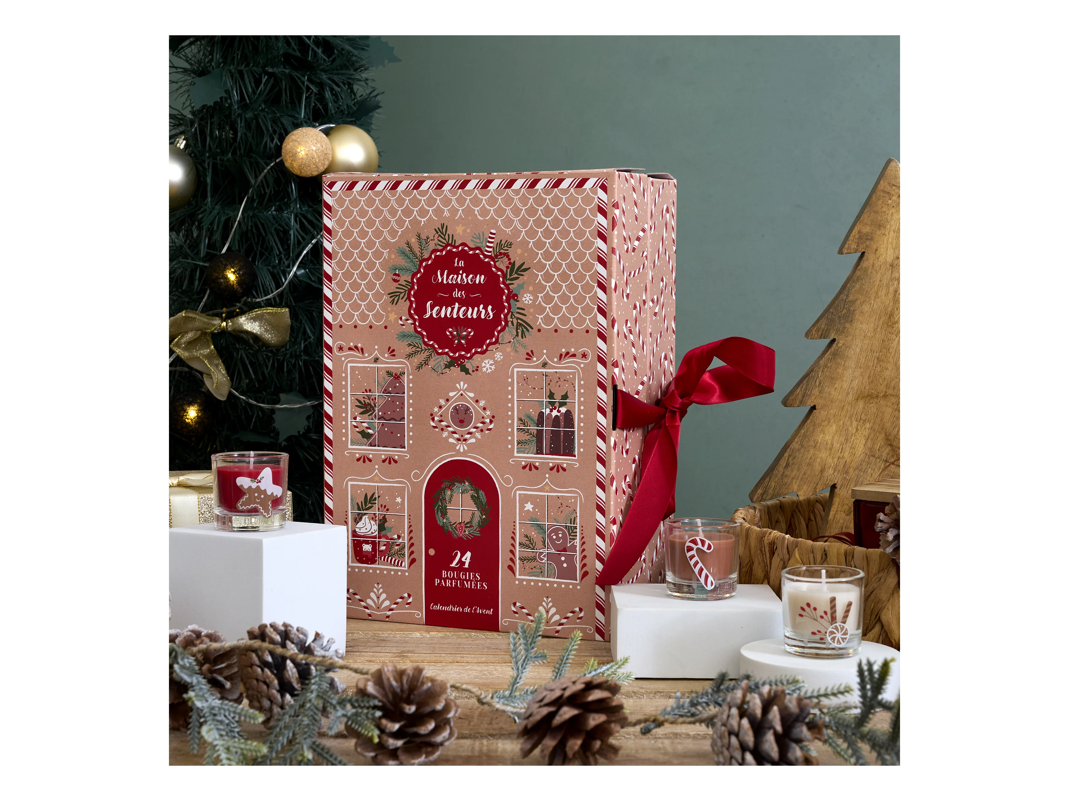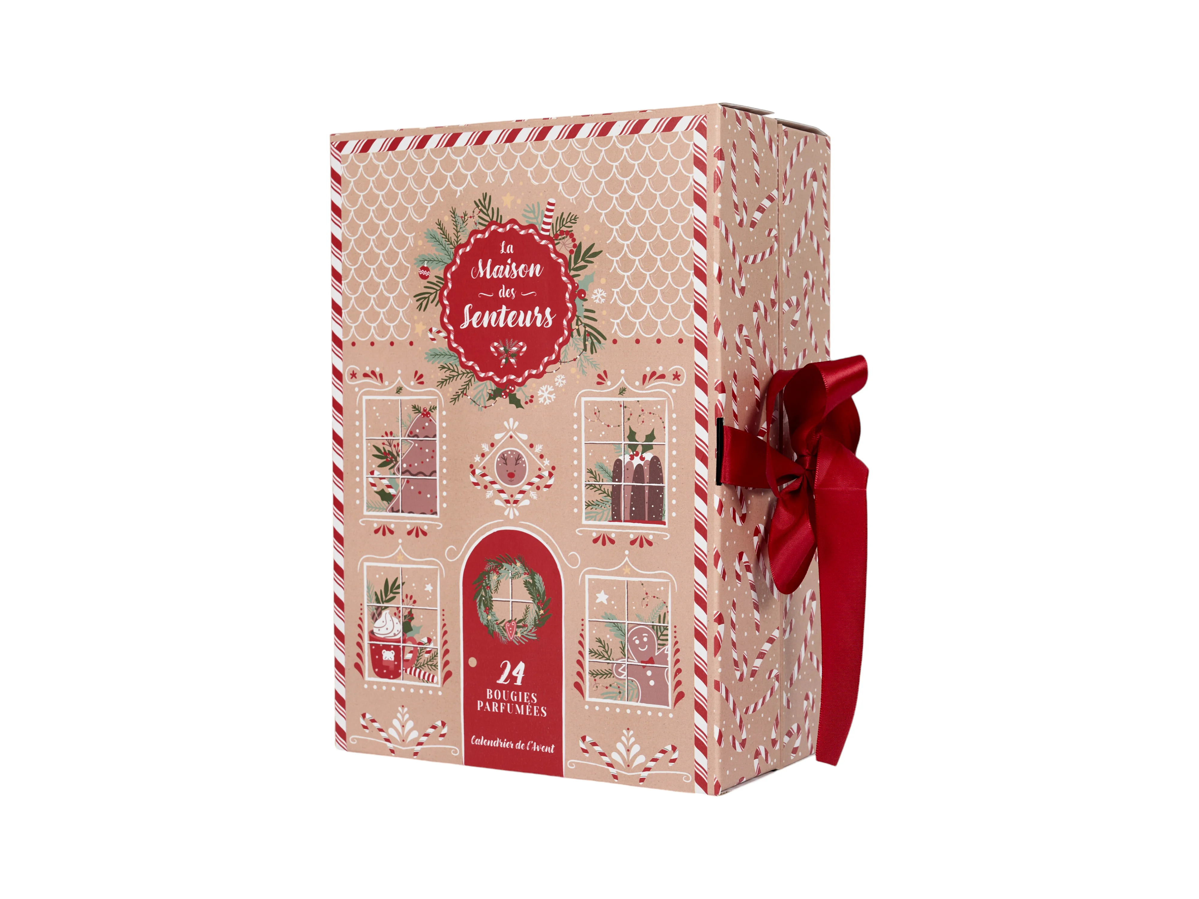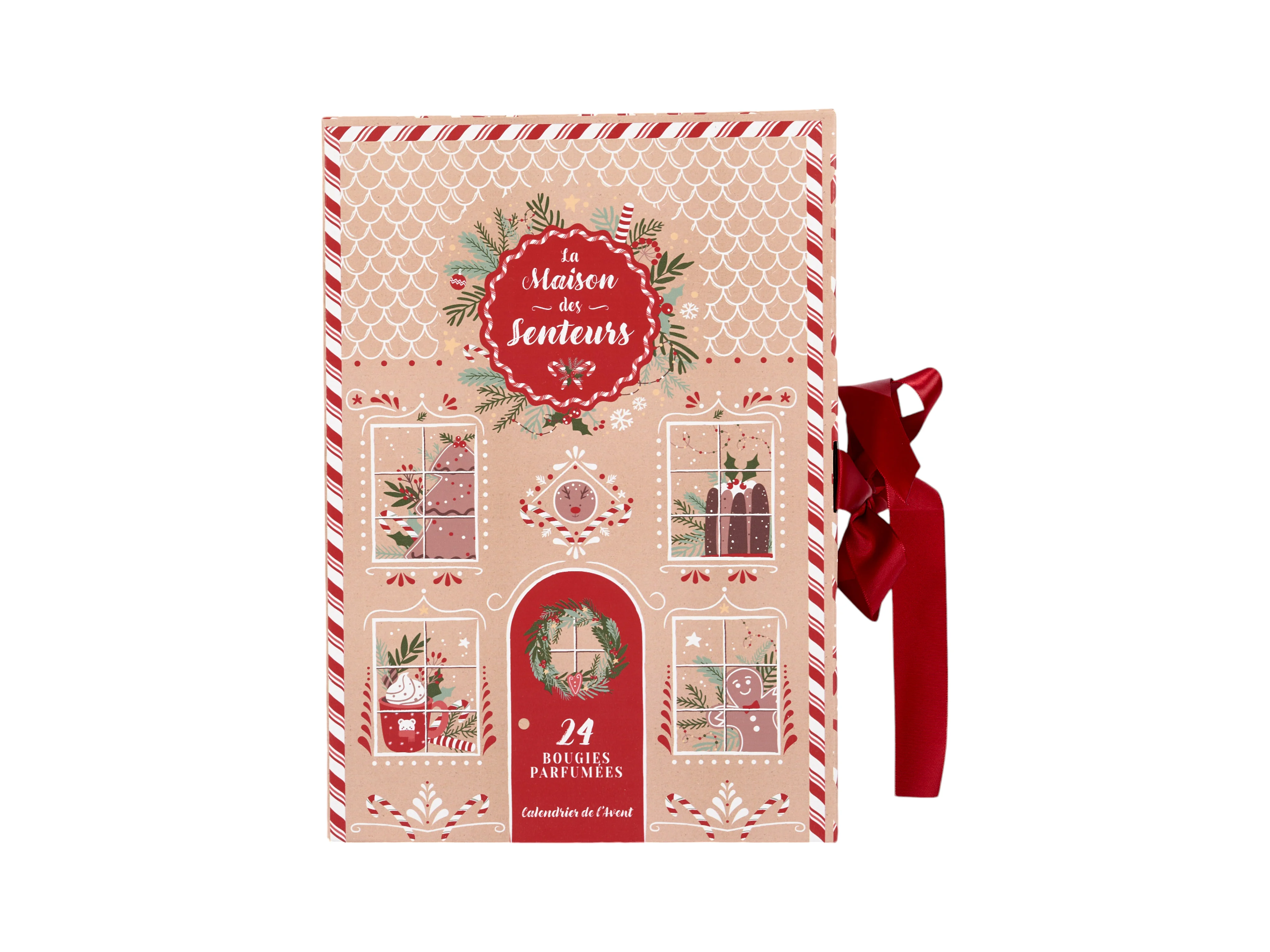 Calendrier Bougie Parfumee X24 Noel Gingerbread Marron, Rouge