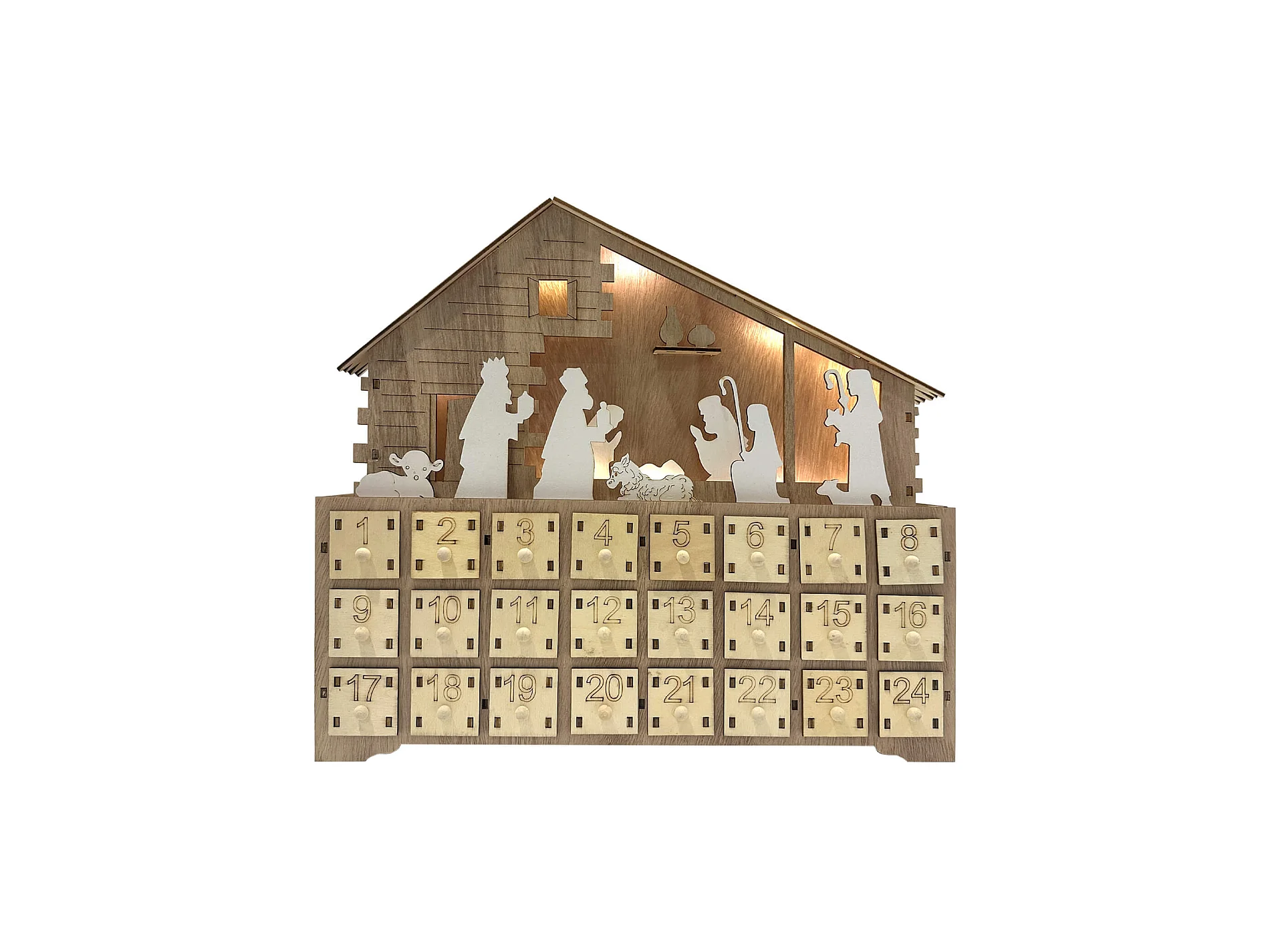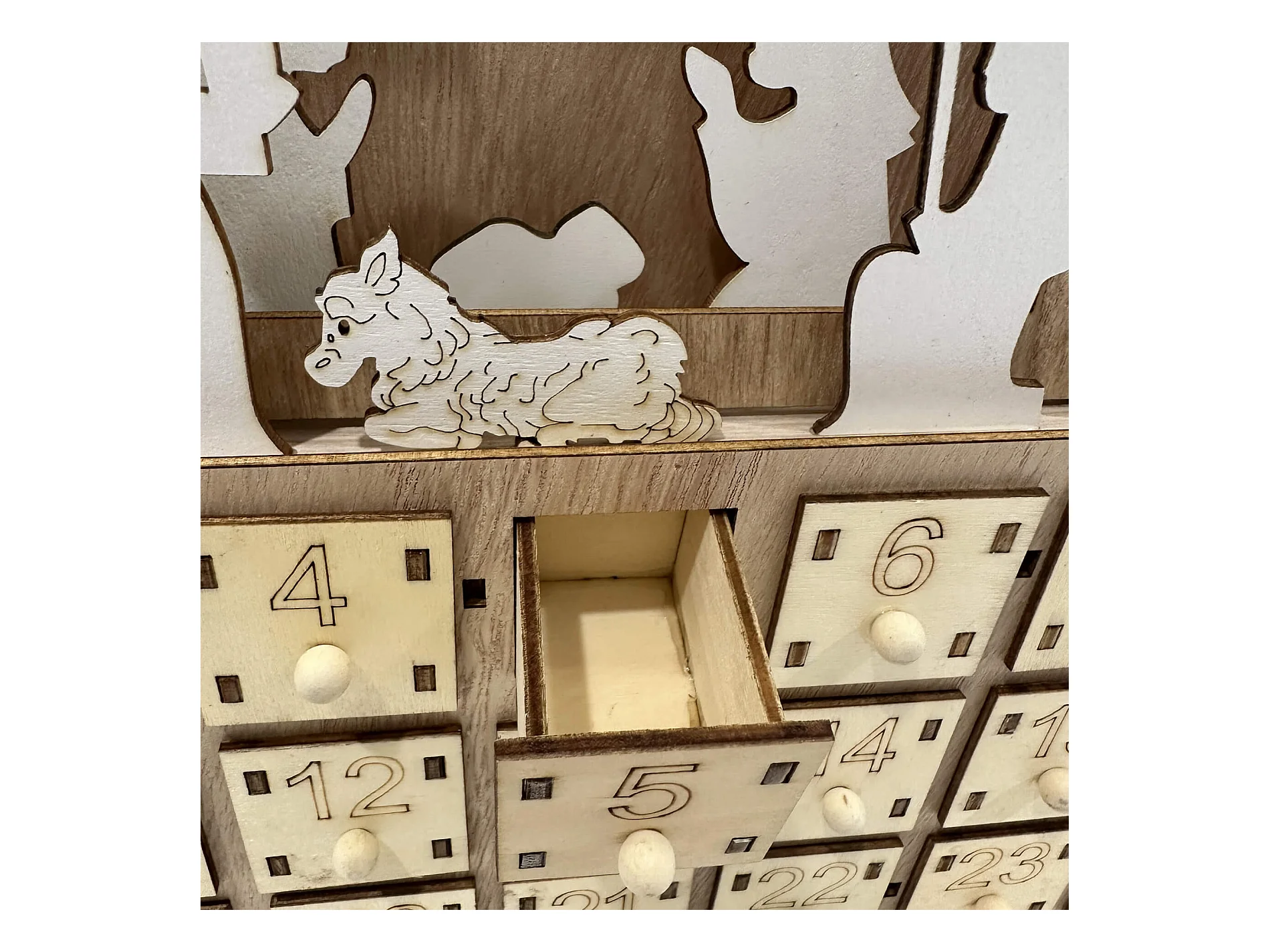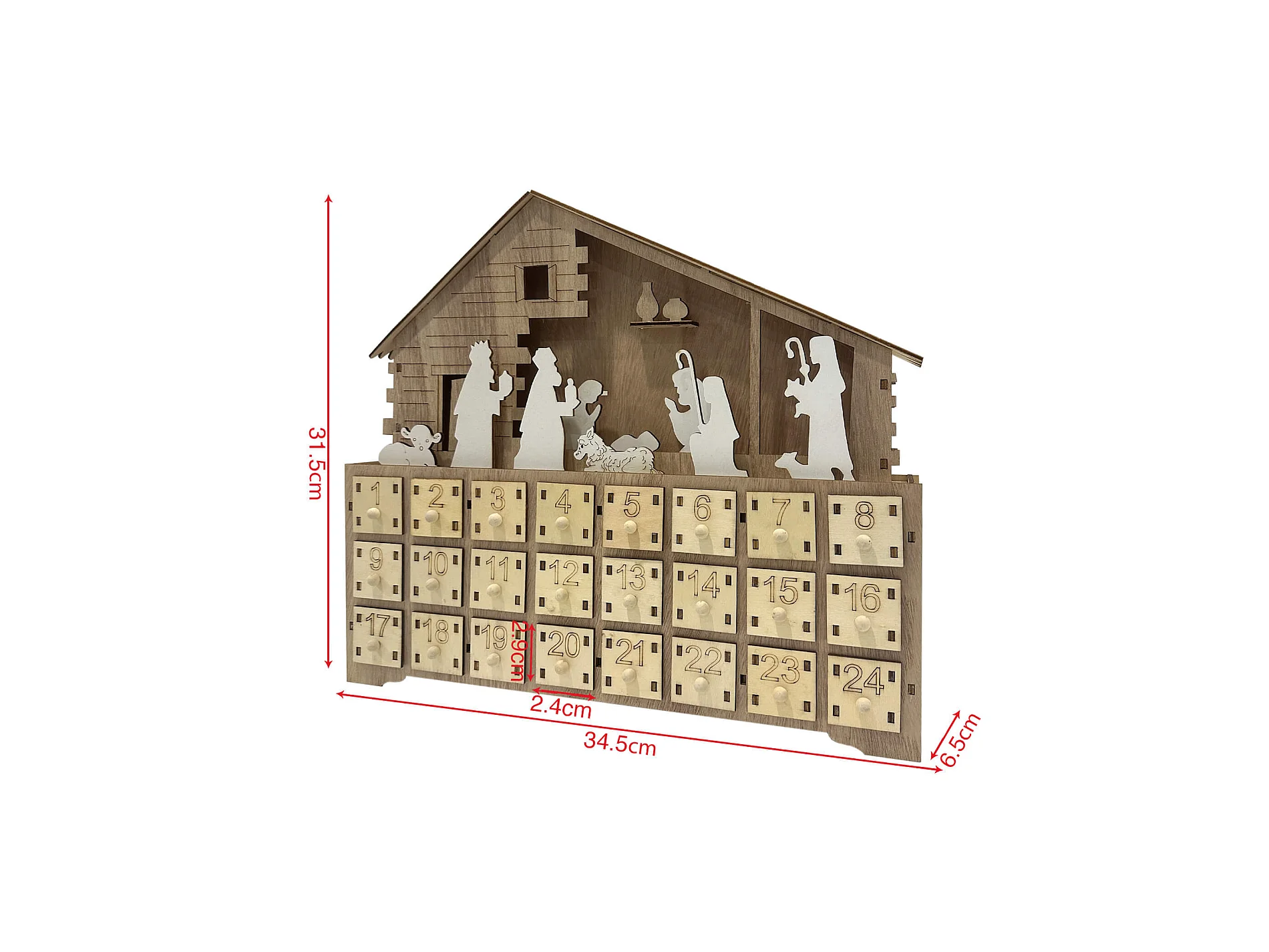 Calendrier de l'Avent avec 24 Tiroirs et Crèche en Bois Sculpté Décoration de Noël