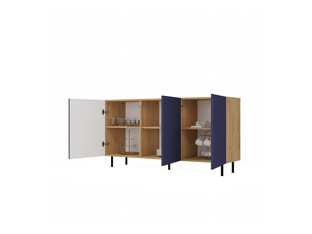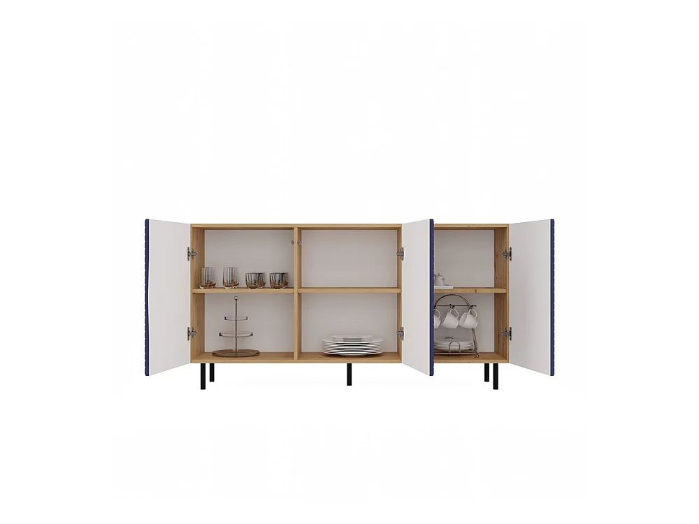 CAMI - Buffet style glamour 3 portes - 150x40x78cm - 4 niches de rangement - Façades à lamelles