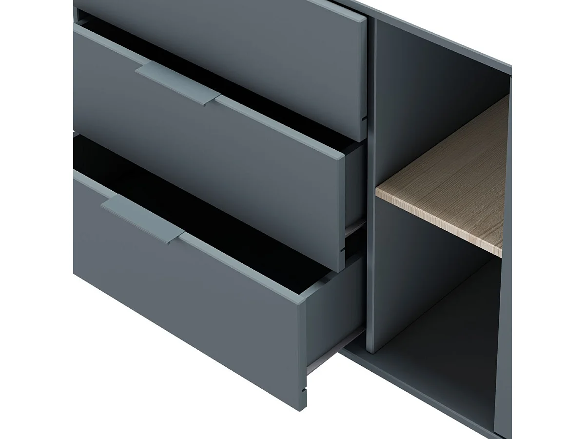 CANACA - Buffet 165cm 2 Portes 3 Tiroirs Scandinave MDF et Pin Massif Gris Vert