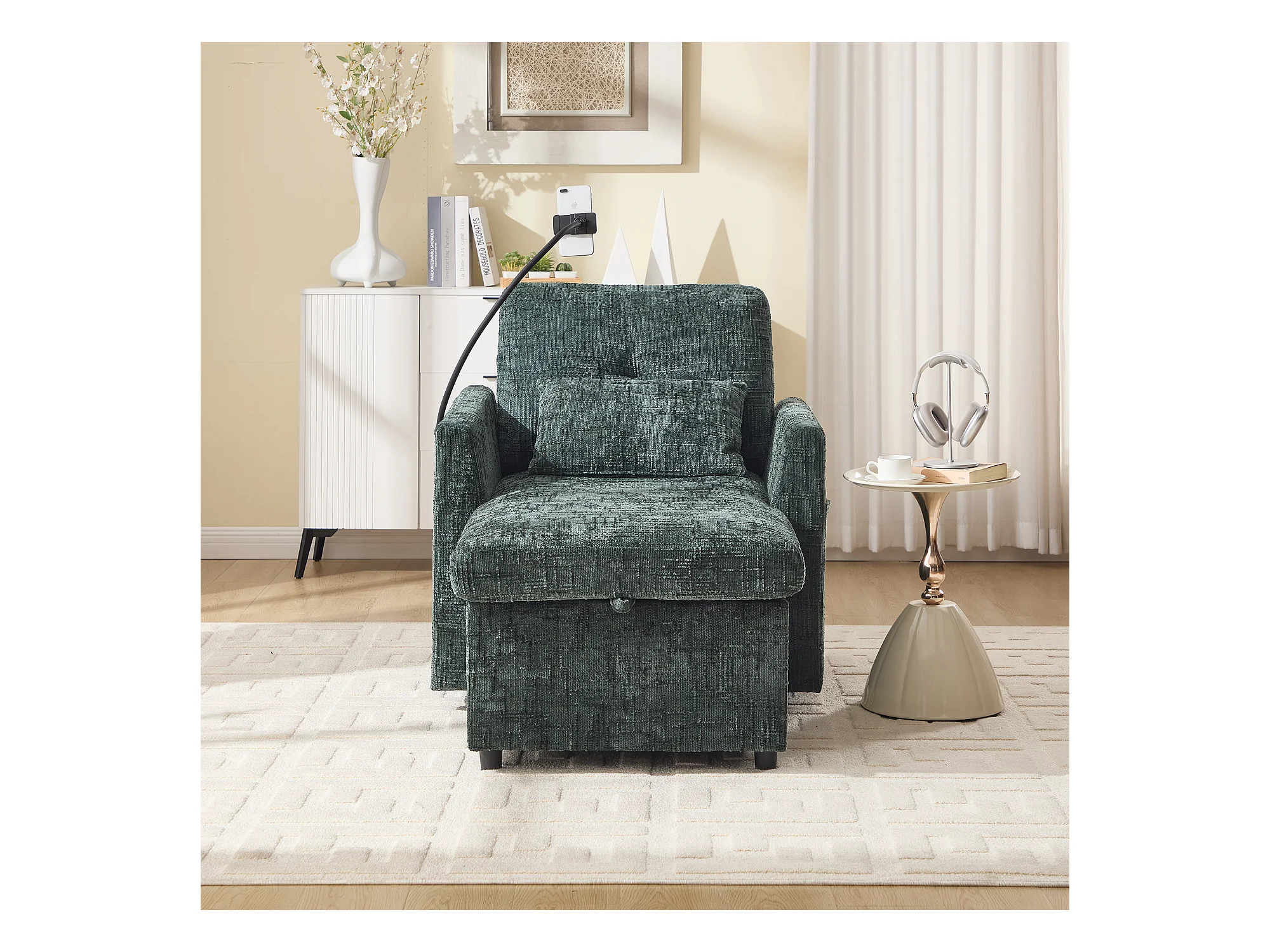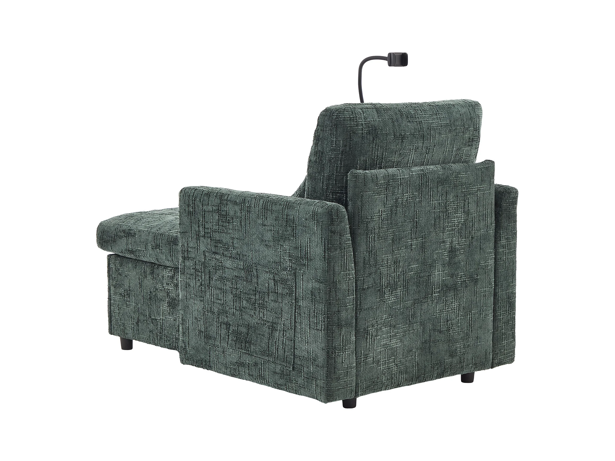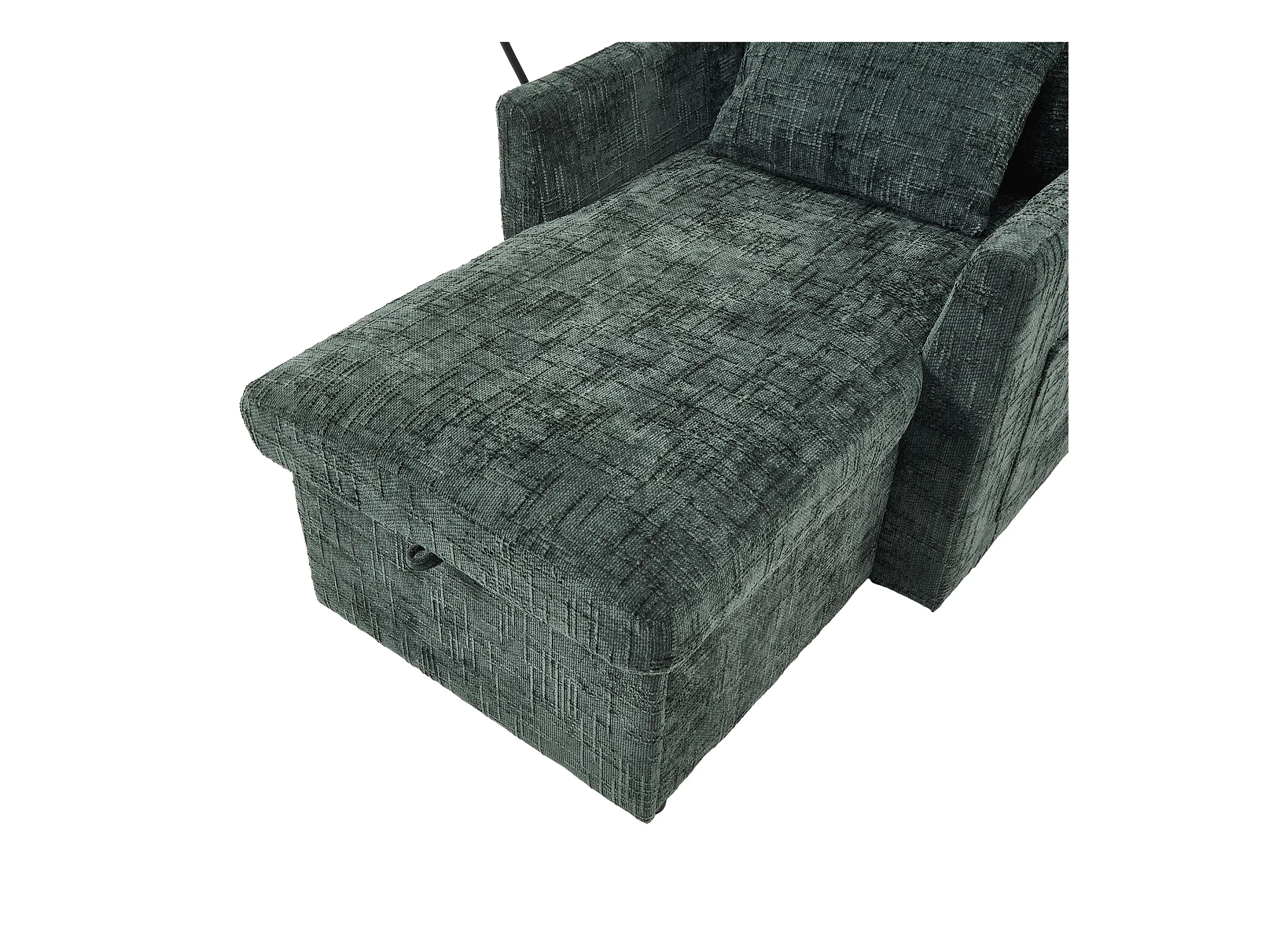 Canapé 1 place avec 2 poches latérales - Canapé de salon avec support pour téléphone et rangement dissimulé - chenille vert