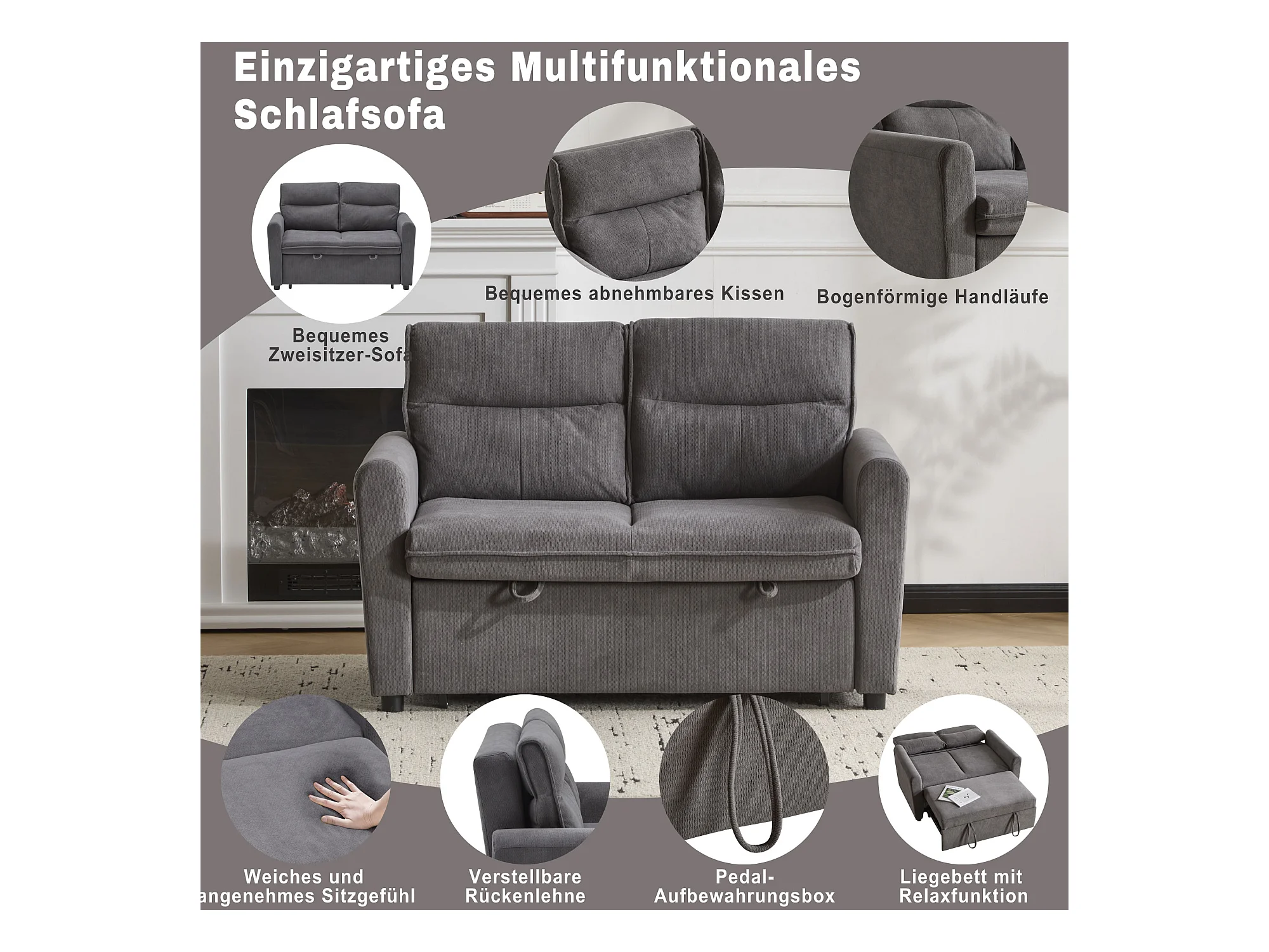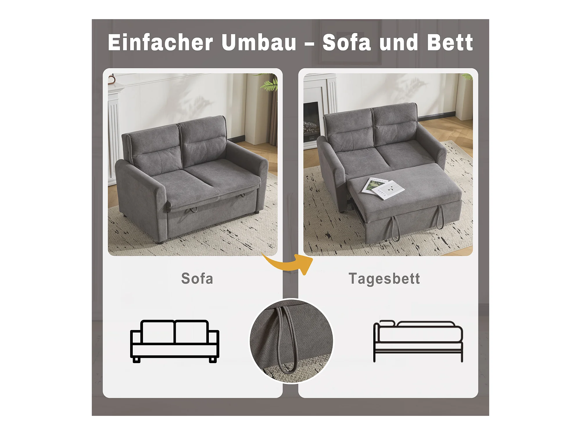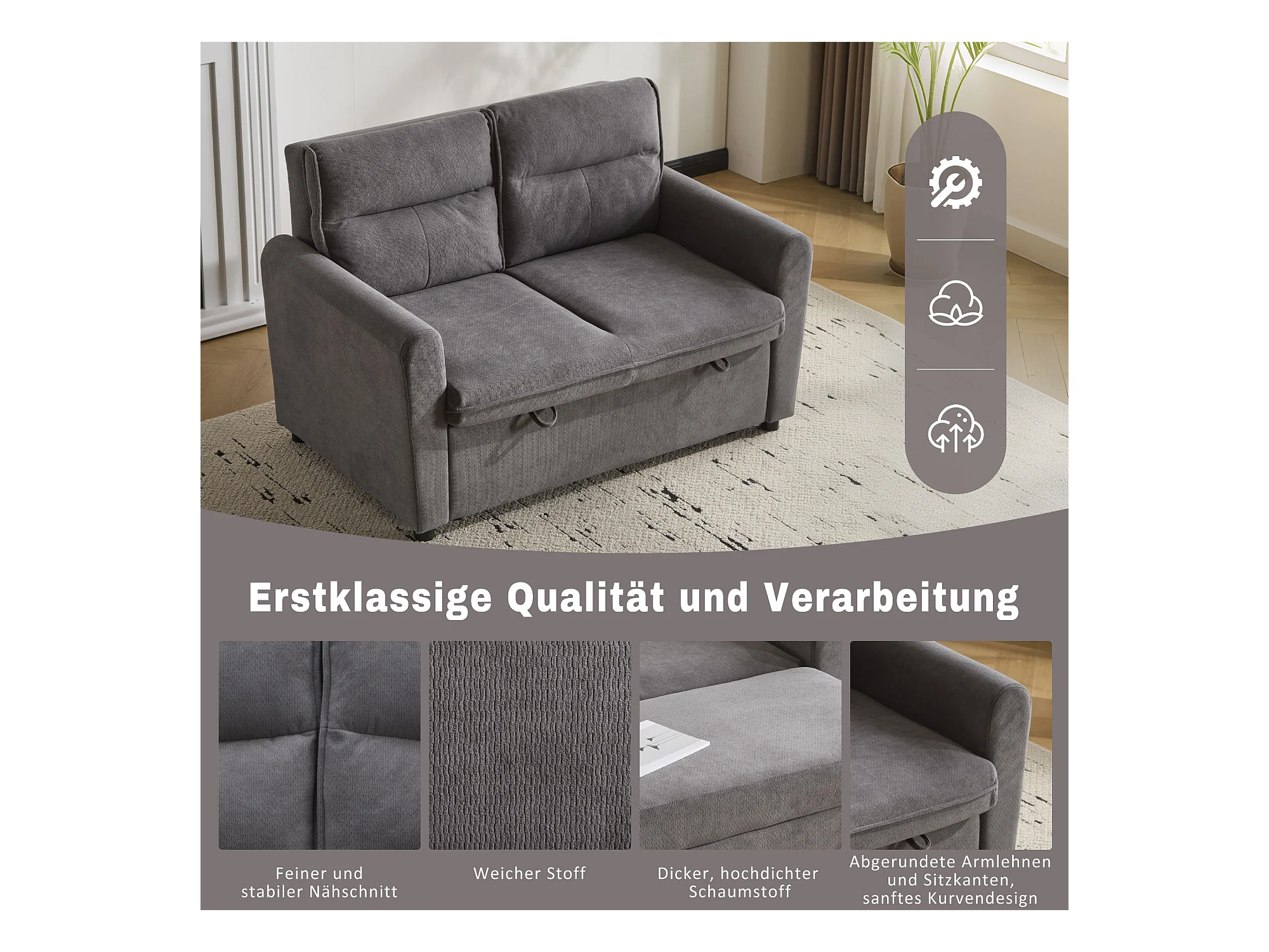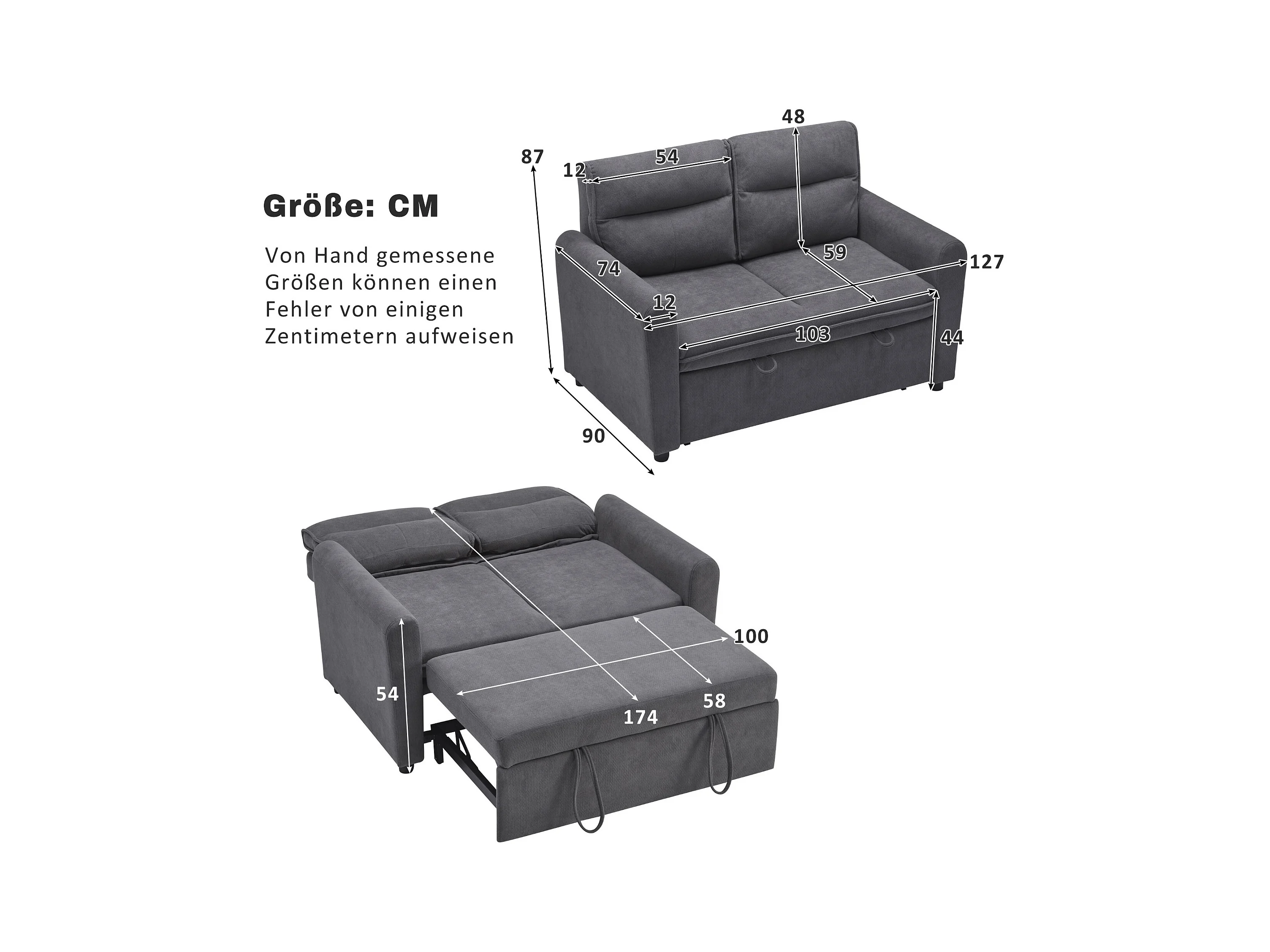 Canapé 2 places - 127 x 90 x 87 cm - Canapé-lit gigogne + Dossier réglable + coussins - velours - gris