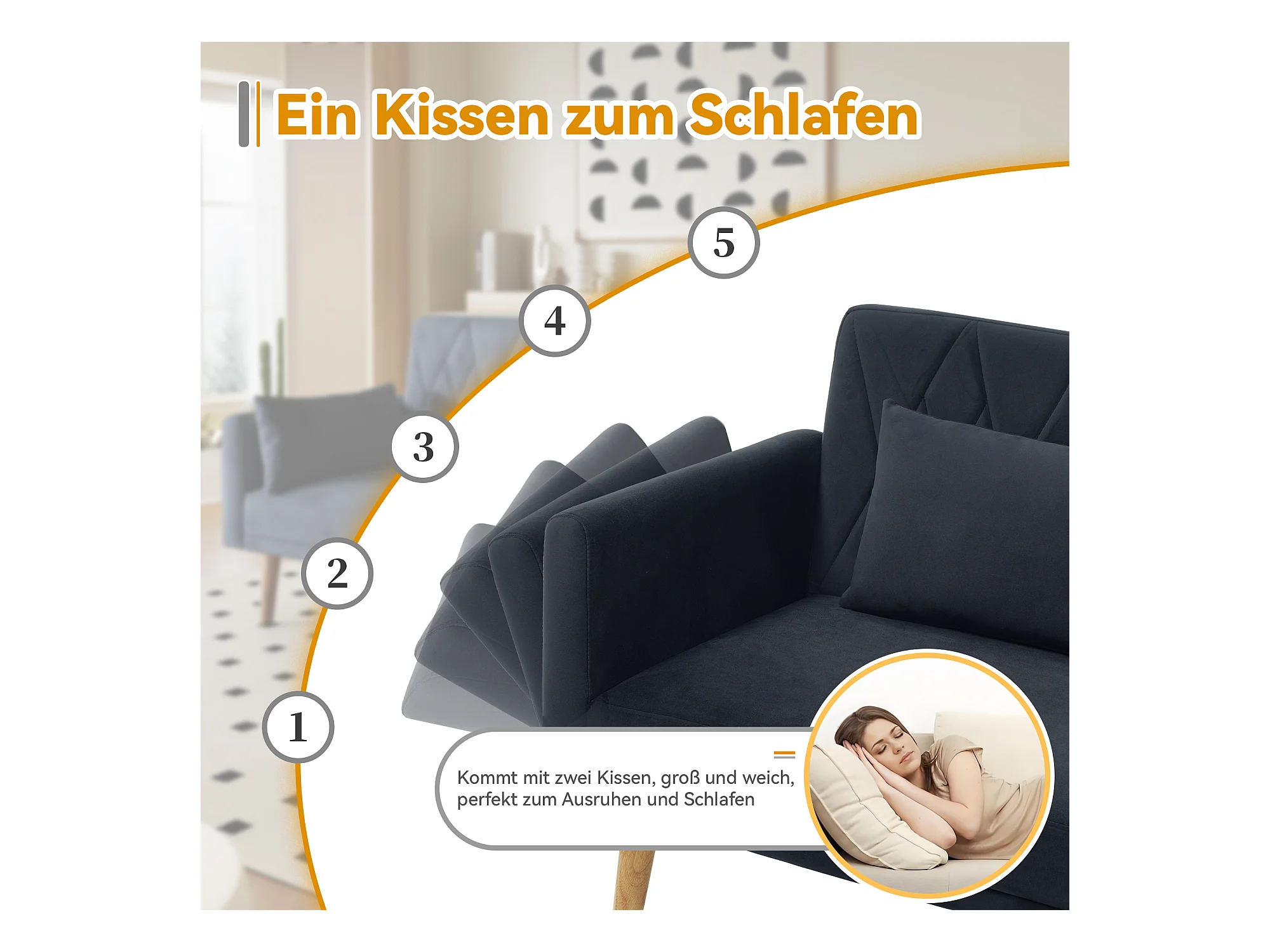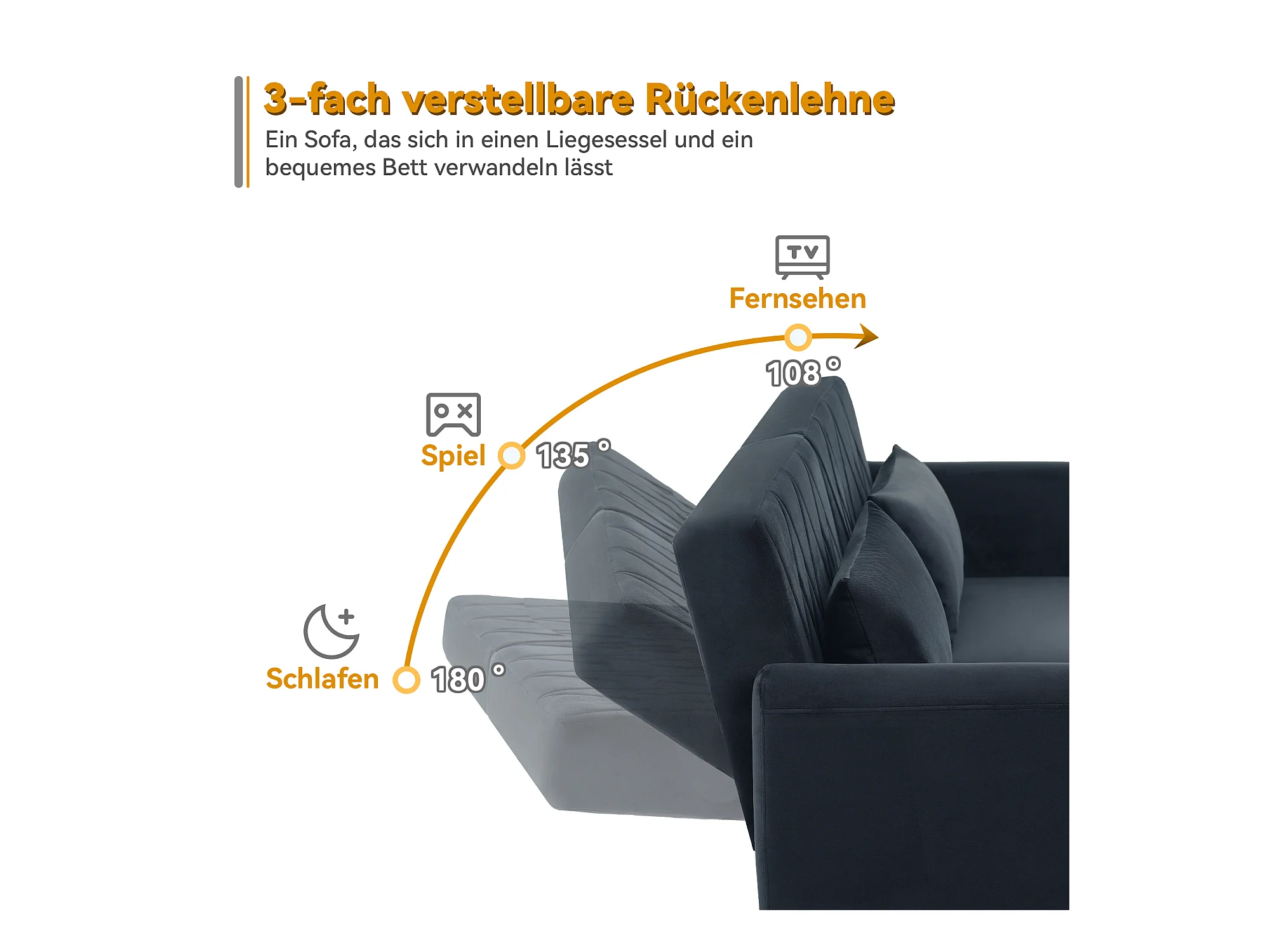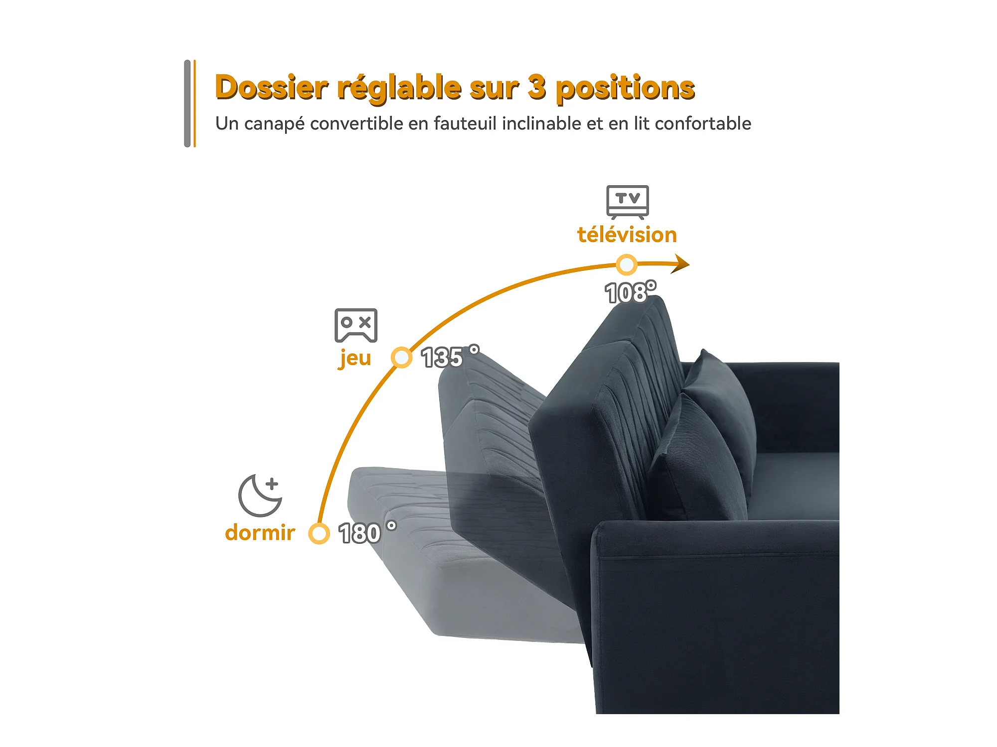 Canapé 2 places - 180 x 75 x 82 cm - canapé-lit convertible - dossier réglable - en velours - noir
